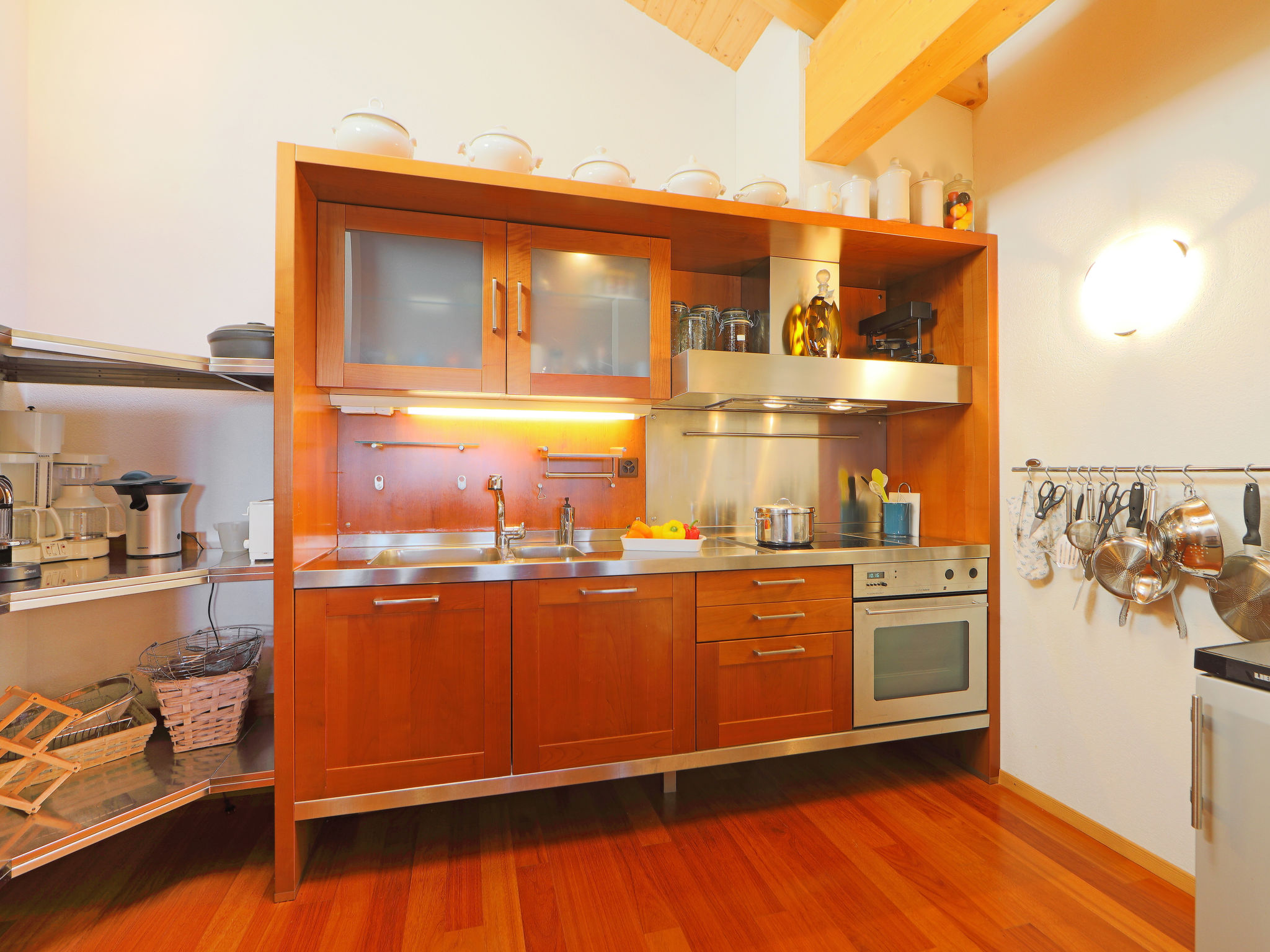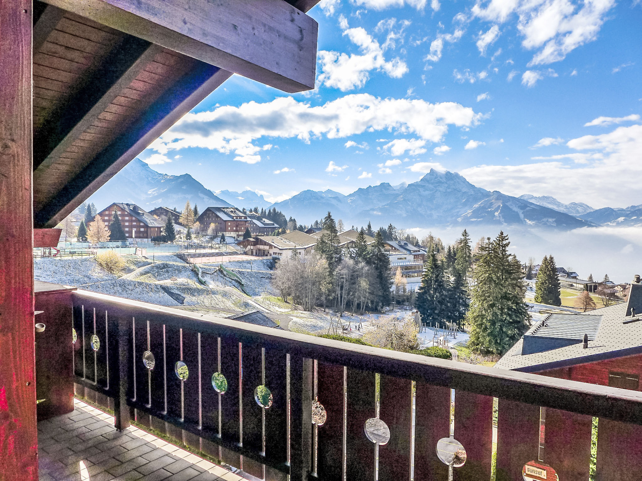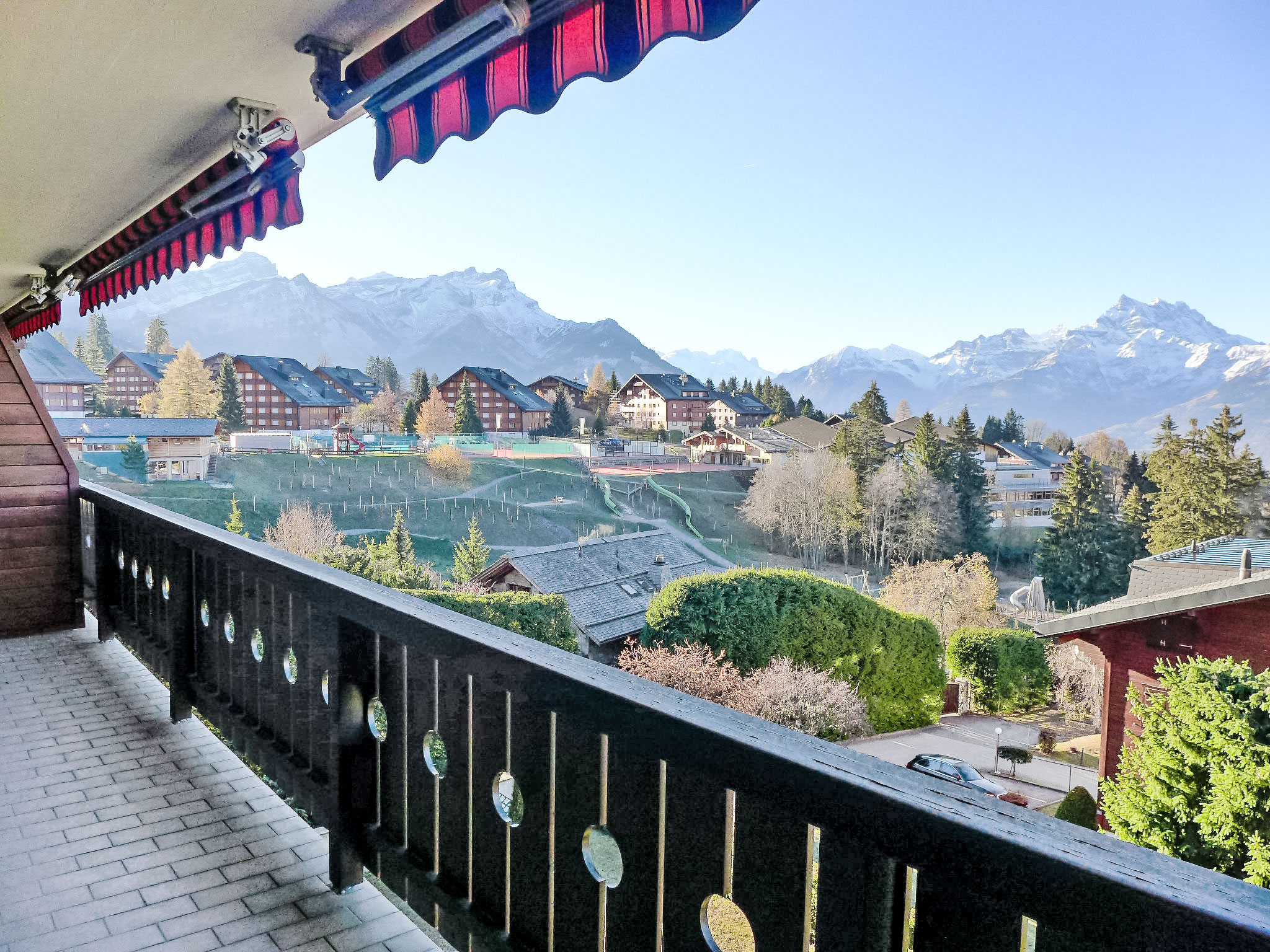 "Sunset B 11", attico di 8 locali 240 m2 su 2 piani al 5. piano, esposizione sud. Spazioso, mansardato, arredamento molto confortevole e di buon gusto: soggiorno/sala da pranzo grande, mansardato altezza del soffitto 210 - 500 cm con finestra panoramica con camino, tavolo da pranzo e TV (schermo piatto). Uscita sul balcone, esposizione sud. 1 camera con 2 letti (90 cm, lunghezza 200 cm), vasca/WC. 1 camera con 1 divano letto (150 cm). Salotto con TV (schermo piatto), DVD. Grande cucina aperta (forno, lavastoviglie, 4 piastre cottura in vetroceramica, tostapane, forno a microonde, congelatore, macchina da caffè elettrica, capsule per la macchina da caffè (Nespresso) extra, set per raclette, set per fondue (formaggio)). WC separato. Piano inferiore: 1 camera con 2 letti (90 cm, lunghezza 200 cm), vasca/doccia/WC. Uscita sul balcone, esposizione sud. 1 camera con 1 letto alla francese (1 x 160 cm, lunghezza 200 cm). 1 camera con 2 letti (90 cm, lunghezza 200 cm). Vasca/WC, doccia/WC. 2 grandi balconi, esposizione sud. Mobili da balcone, barbecue. Splendida vista panoramica sulle montagne. A disposizione: lavatrice. Internet (wifi, gratis). Garage nr. 11 (2 Auto). Prego notare: appartamento per non fumatori. Macchina per raclette: mezza forma di formaggio.