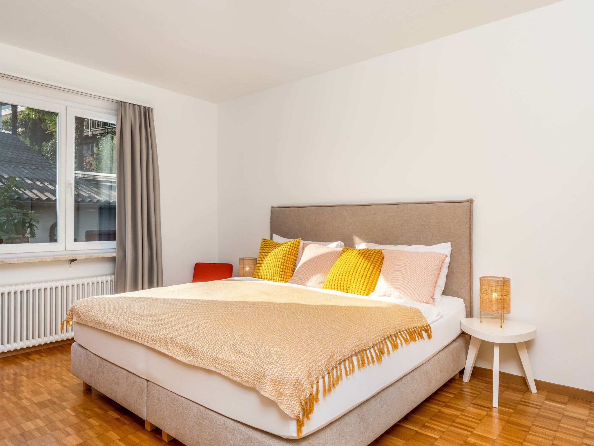 "Junior Suite Modern", apt. di 2 locali 60 m2 al 2. piano, esposizione ovest. Soggiorno/sala da pranzo con 1 divano letto (160 cm, lunghezza 200 cm), TV (satellite) e radio. 1 camera matrimoniale con 1 letto doppio (1 x 200 cm, lunghezza 200 cm). Cucina aperta (forno, 4 piastre cottura in vetroceramica, bollitore elettrico, macchina da caffè elettrica, capsule per la macchina da caffè (Nespresso) extra). Vasca/WC. 2 balconi. Parziale vista sul lago. Massimo 1 animale/cane consentito. NL-00004949