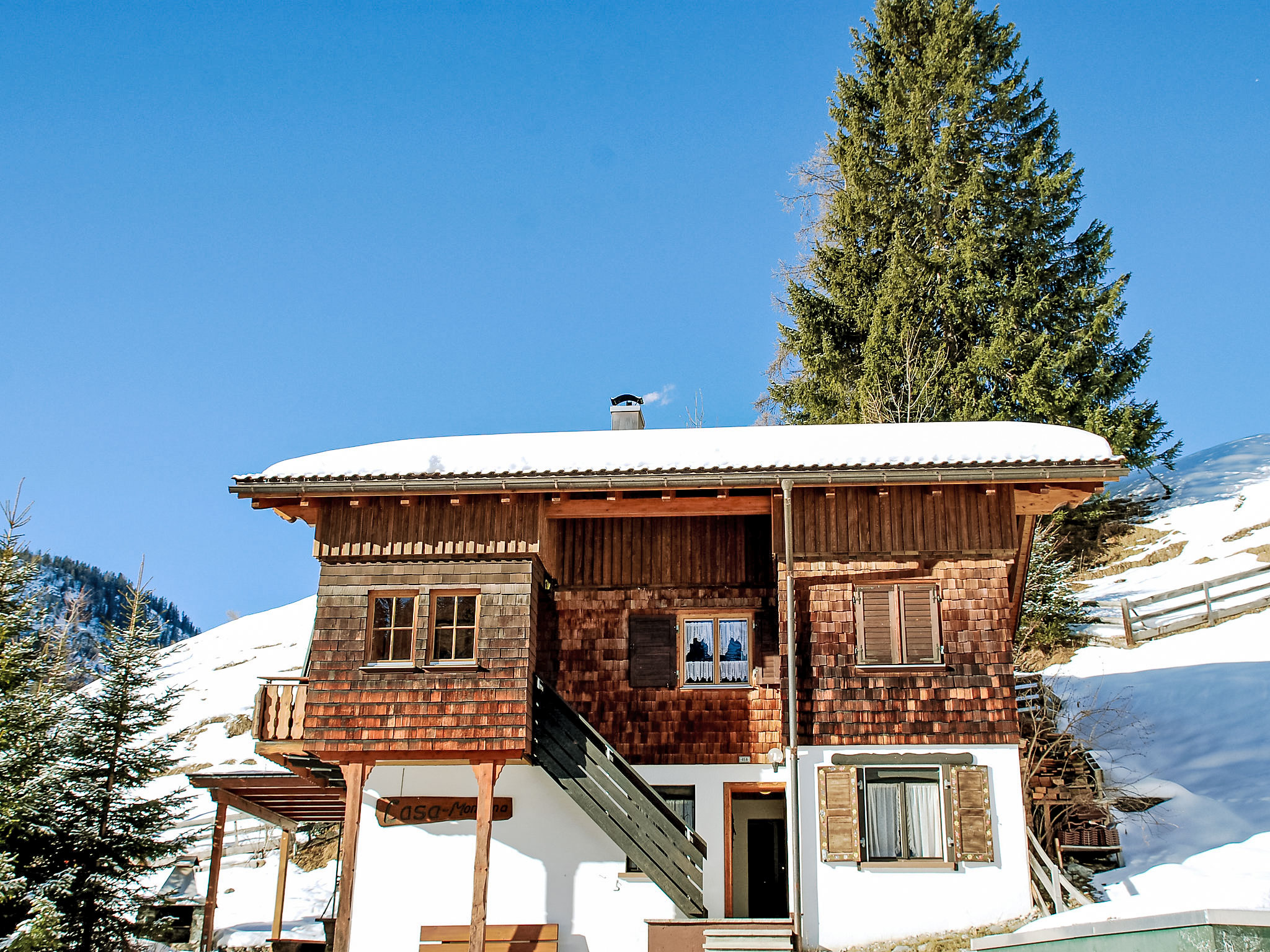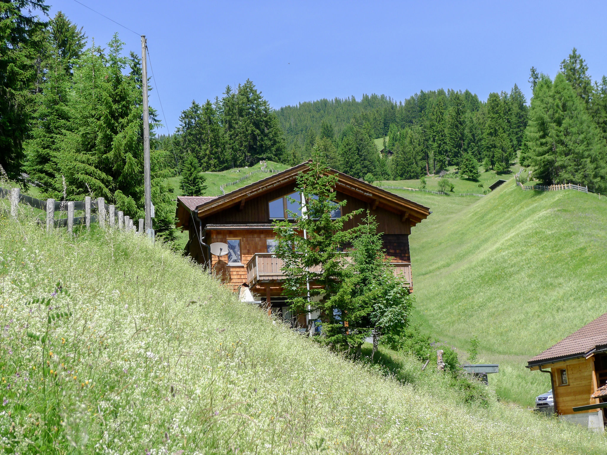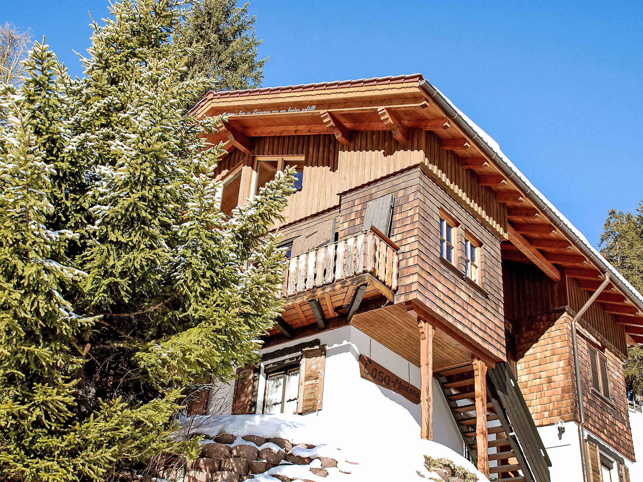 Langwies 9 km da Arosa: Casa bifamiliare "Montana", accogliente, rustica, indipendente, costruita nel 1972, circondata da alberi e prati. In un borgo, posizione tranquilla, soleggiata sul pendio, in una strada senza uscita, immerso nel verde, esposizione sud. In comune: giardino, prato per sdraiarsi. Patio, barbecue. Nella casa: deposito sci. Accesso fino della proprietà. Scalinata (16 scalini) fino alla casa. Negozio alimentare, ristorante 500 m, fermata bus "Langwies, Abzw. Bahnhof" 700 m, stazione ferroviaria "Langwies GR" 900 m, piscina 8.6 km, piscina coperta 8.6 km. Campo da golf (18 buche) 8 km, tennis 8 km, maneggio 8 km, funivia 8 km, scuola di sci 8 km, pattinaggio 8 km. Attrazioni nelle vicinanze: Chur. Rinomate località sciistiche: Treffpunkt Hochwang, Arosa-Lenzerheide. Sentieri escursionistici: Molinis-Tschiertschen. Prego notare: auto consigliata.