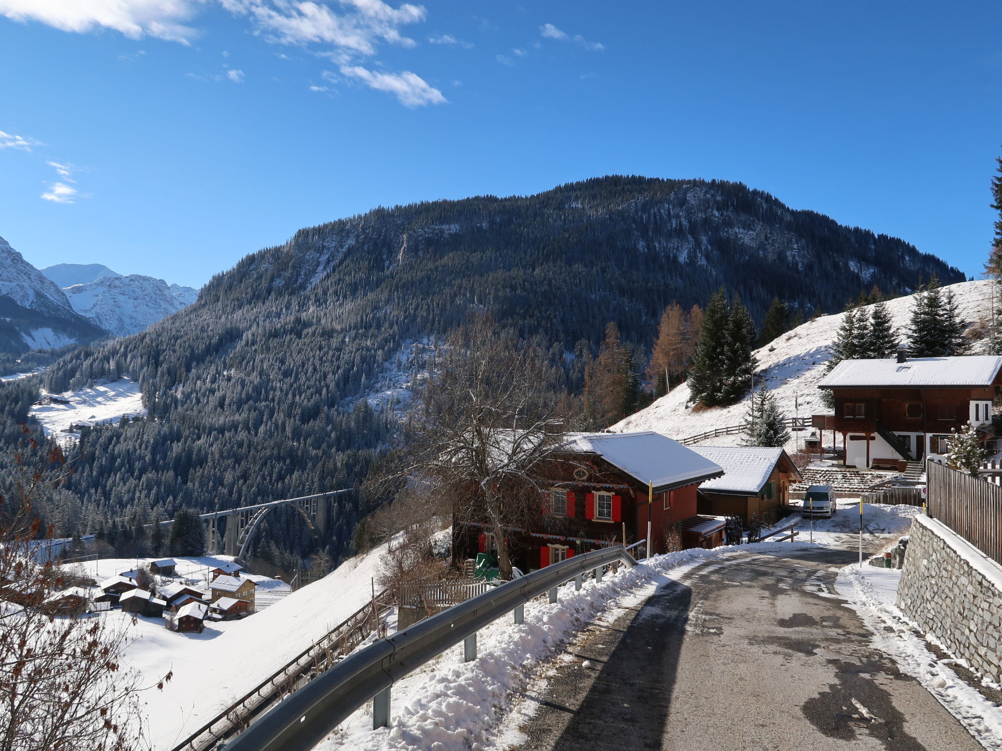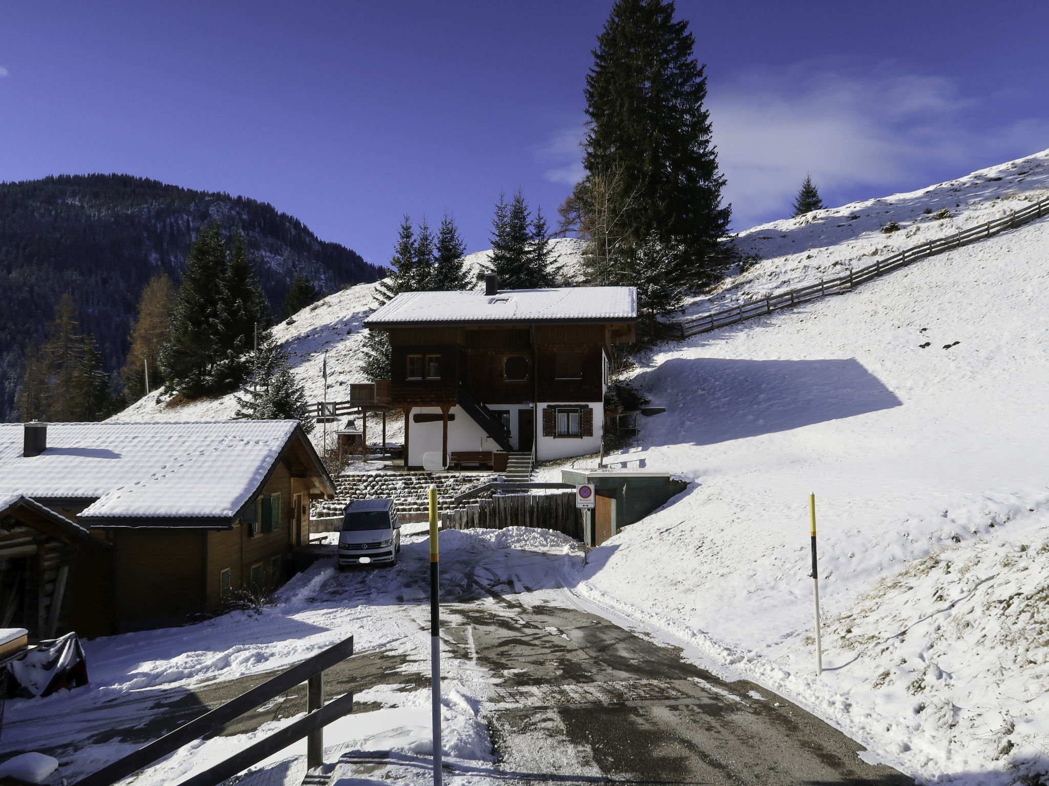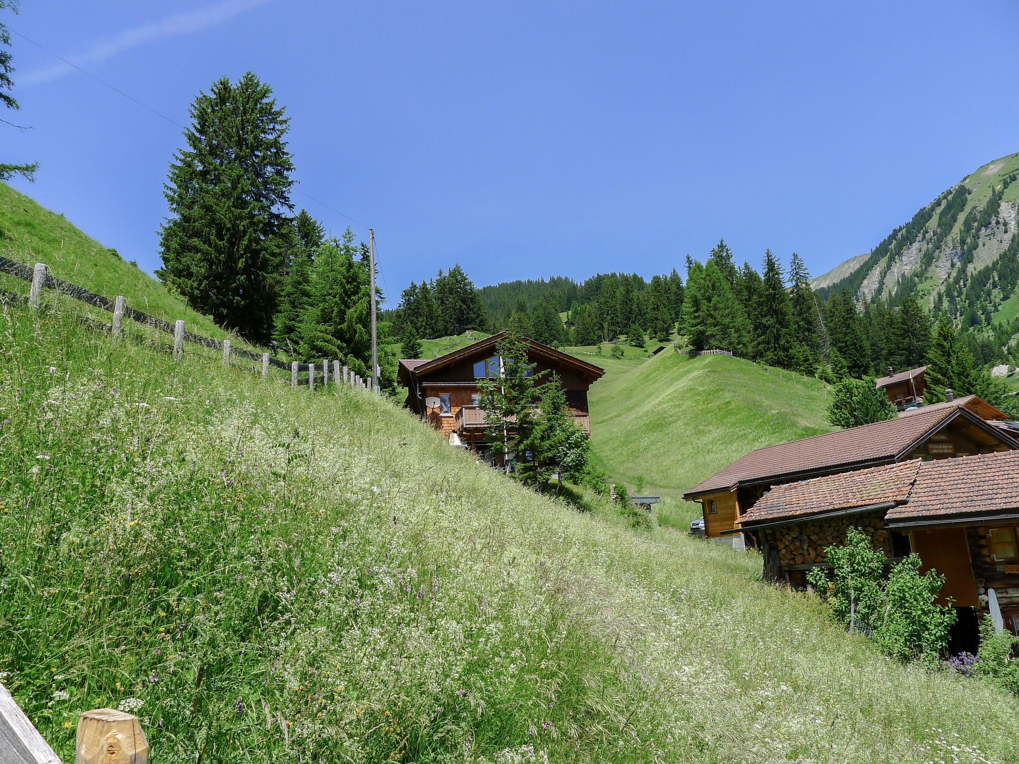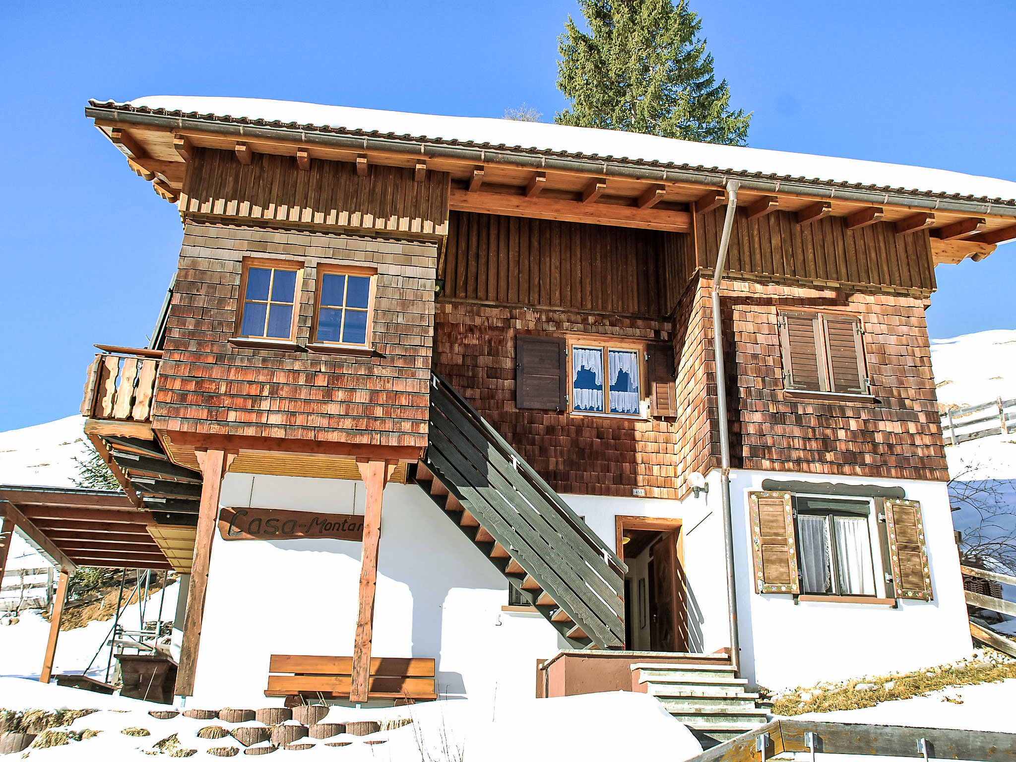 Langwies 9 km da Arosa: Casa bifamiliare "Montana", accogliente, rustica, indipendente, costruita nel 1972, circondata da alberi e prati. In un borgo, posizione tranquilla, soleggiata sul pendio, in una strada senza uscita, immerso nel verde, esposizione sud. In comune: giardino, prato per sdraiarsi. Patio, barbecue. Nella casa: deposito sci. Accesso fino della proprietà. Scalinata (16 scalini) fino alla casa. Negozio alimentare, ristorante 500 m, fermata bus "Langwies, Abzw. Bahnhof" 700 m, stazione ferroviaria "Langwies GR" 900 m, piscina 8.6 km, piscina coperta 8.6 km. Campo da golf (18 buche) 8 km, tennis 8 km, maneggio 8 km, funivia 8 km, scuola di sci 8 km, pattinaggio 8 km. Attrazioni nelle vicinanze: Chur. Rinomate località sciistiche: Treffpunkt Hochwang, Arosa-Lenzerheide. Sentieri escursionistici: Molinis-Tschiertschen. Prego notare: auto consigliata.