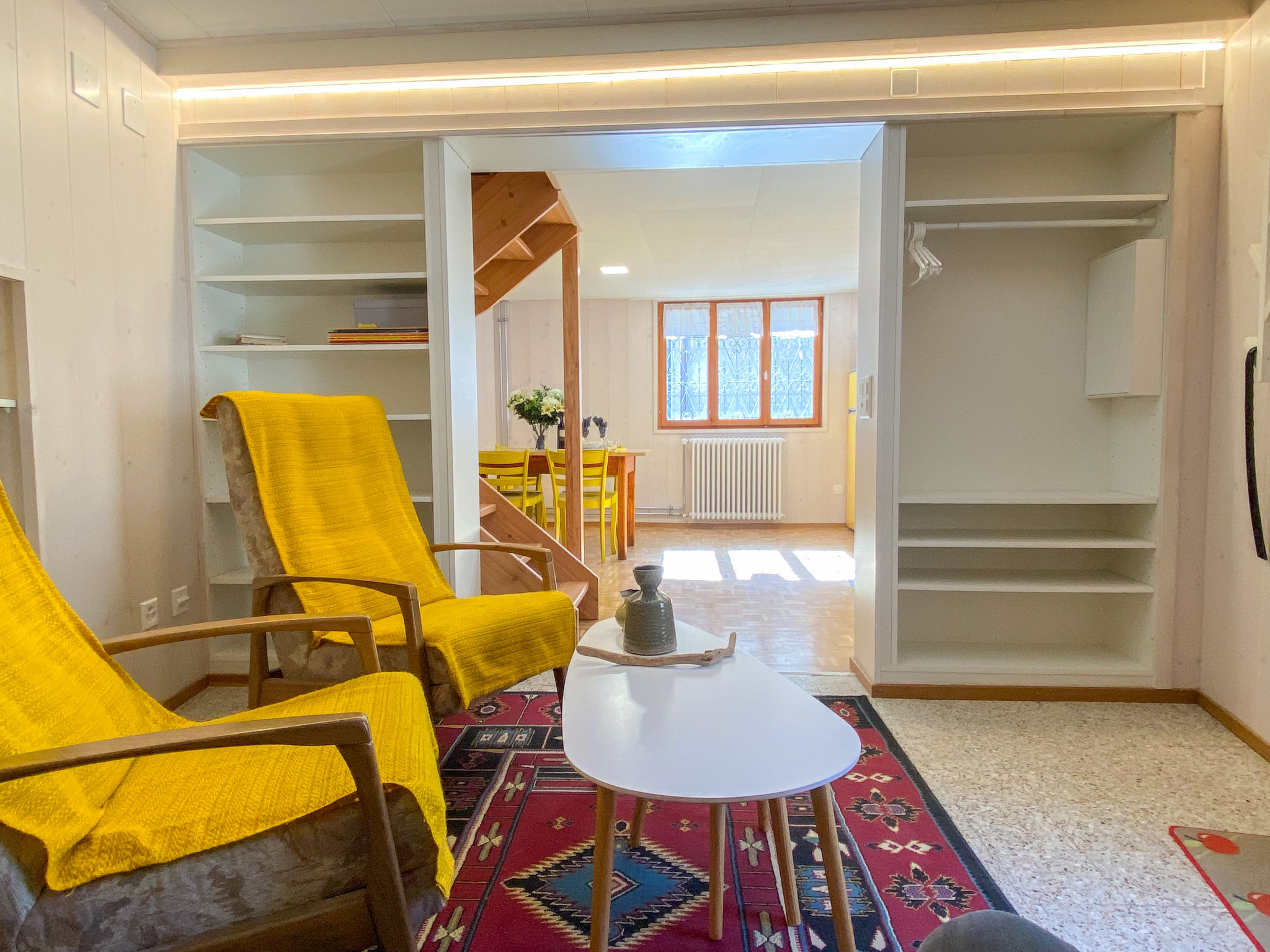 "Della Posta Stambecco", apt. di 3 locali 55 m2 su 2 piani, esposizione sud. Arredamento funzionale e accogliente: soggiorno aperto con TV (via cavo) (schermo piatto). Grande cucina aperta (forno, 4 piastre cottura in vetroceramica, tostapane, bollitore elettrico, congelatore, set per raclette, set per fondue (formaggio)) con tavolo da pranzo. Piano superiore: 2 camere matrimoniali, ogni camera con 2 letti (90 cm, lunghezza 200 cm). Doccia/WC. Riscaldamento, boiler (200 litri). Posto a sedere. Vista sulle montagne e sulla località. A disposizione: ferro da stiro, asciugacapelli. Internet (wifi, gratis). Prego notare: appartamento per non fumatori.