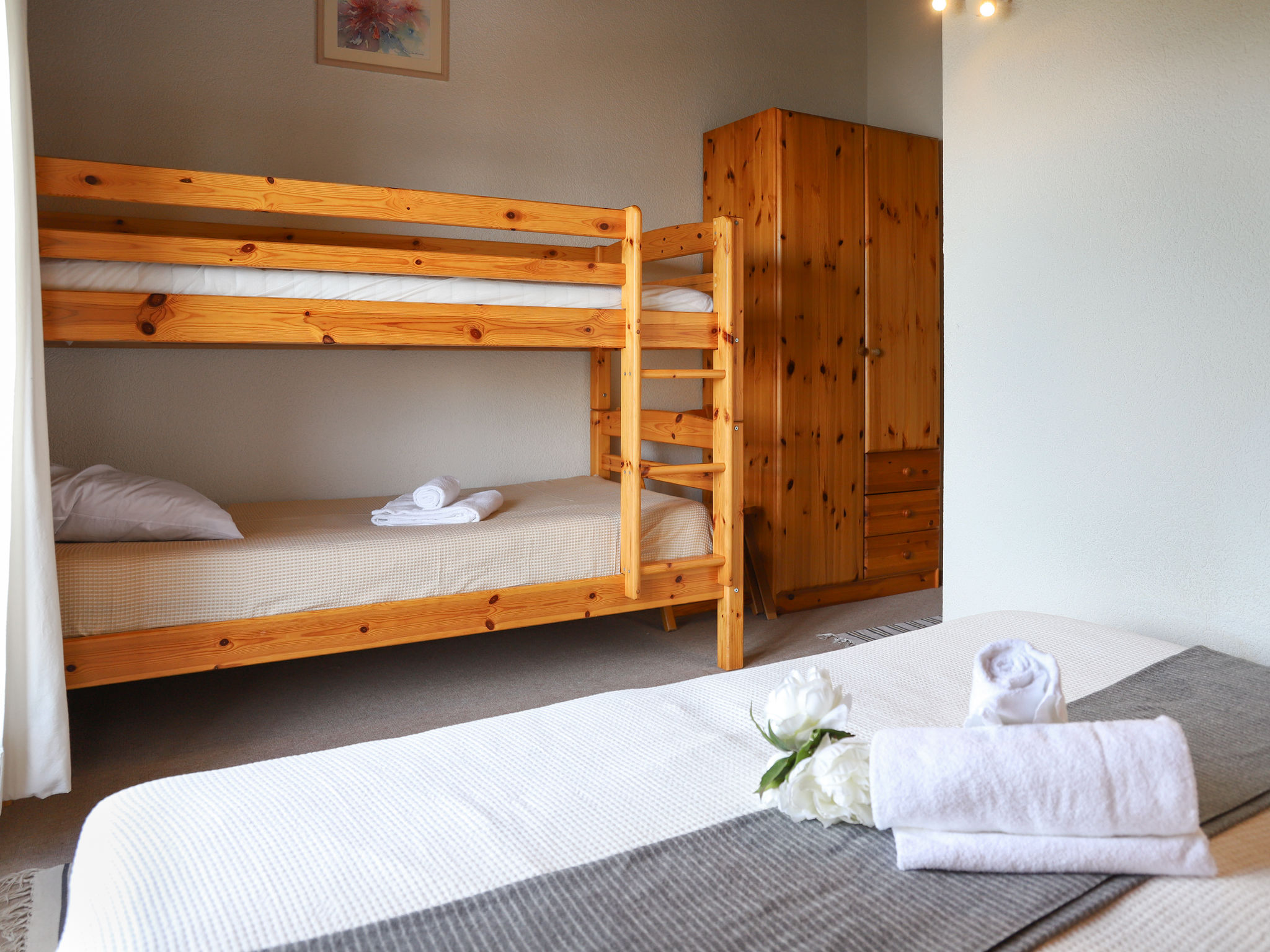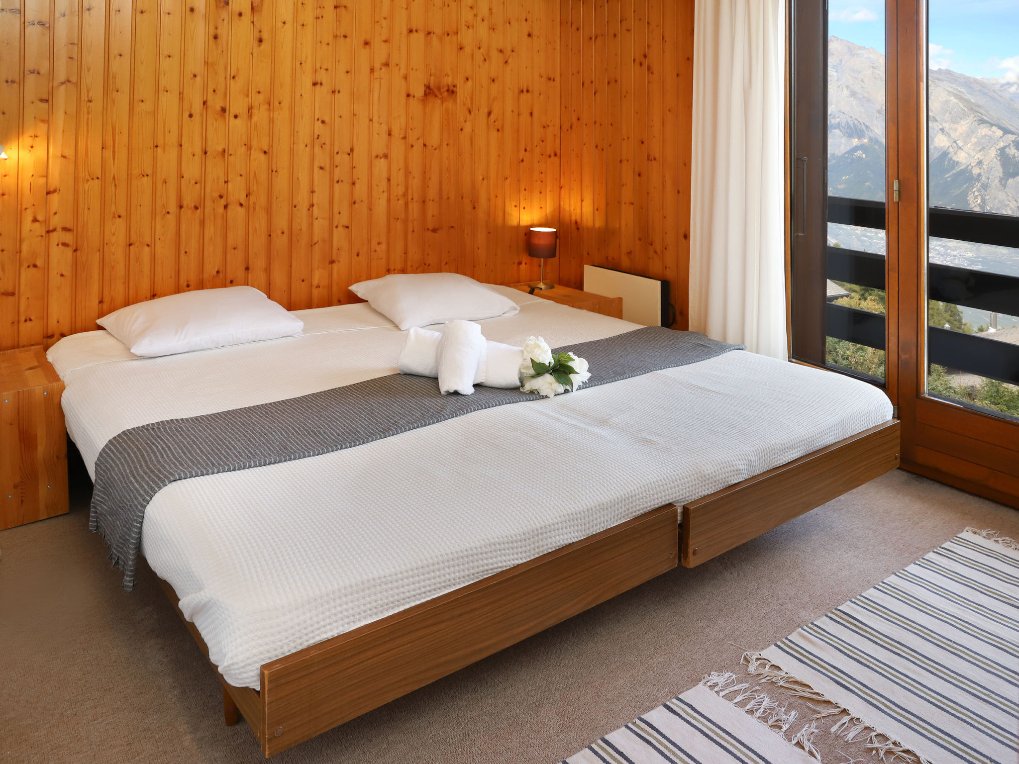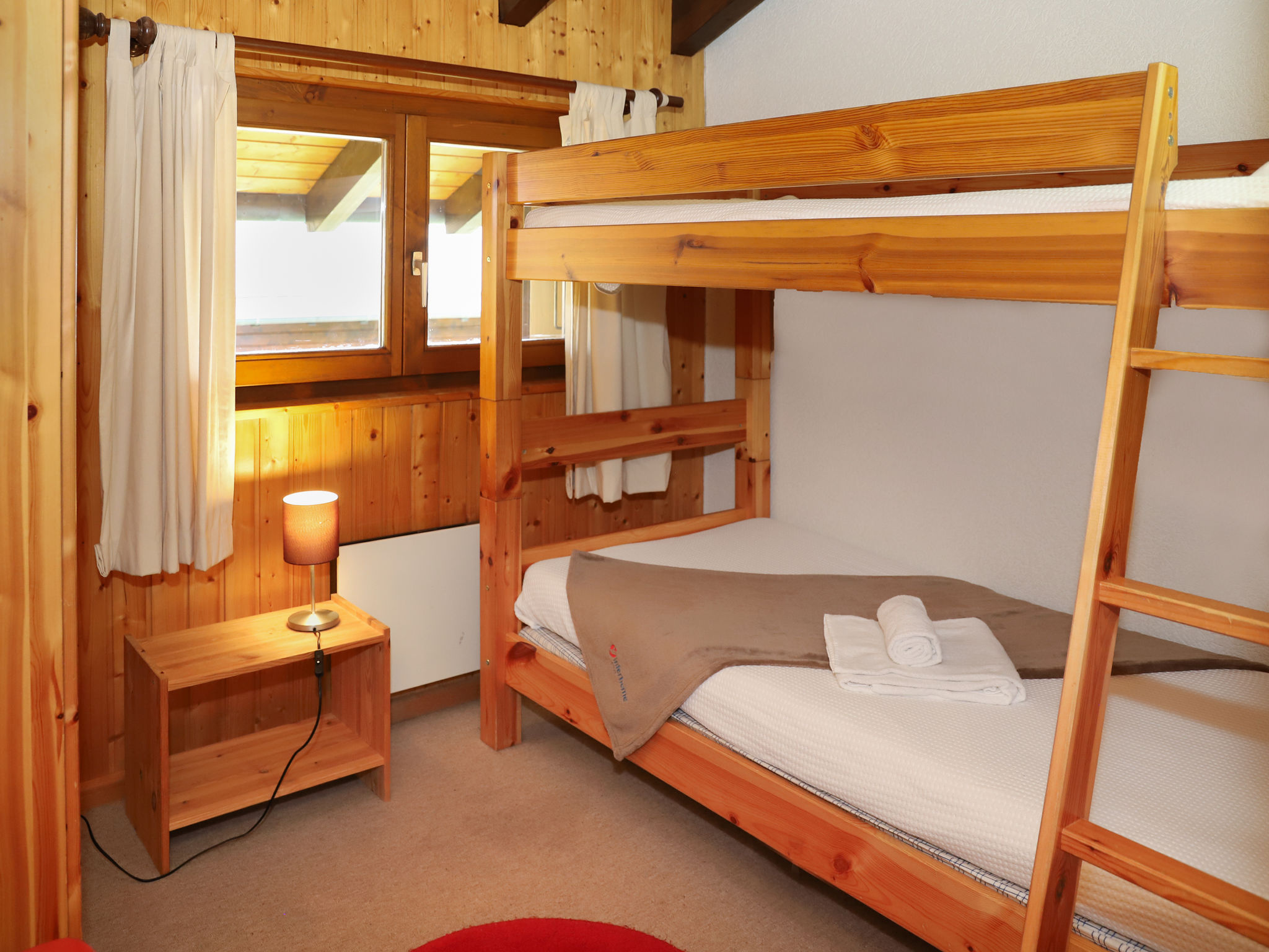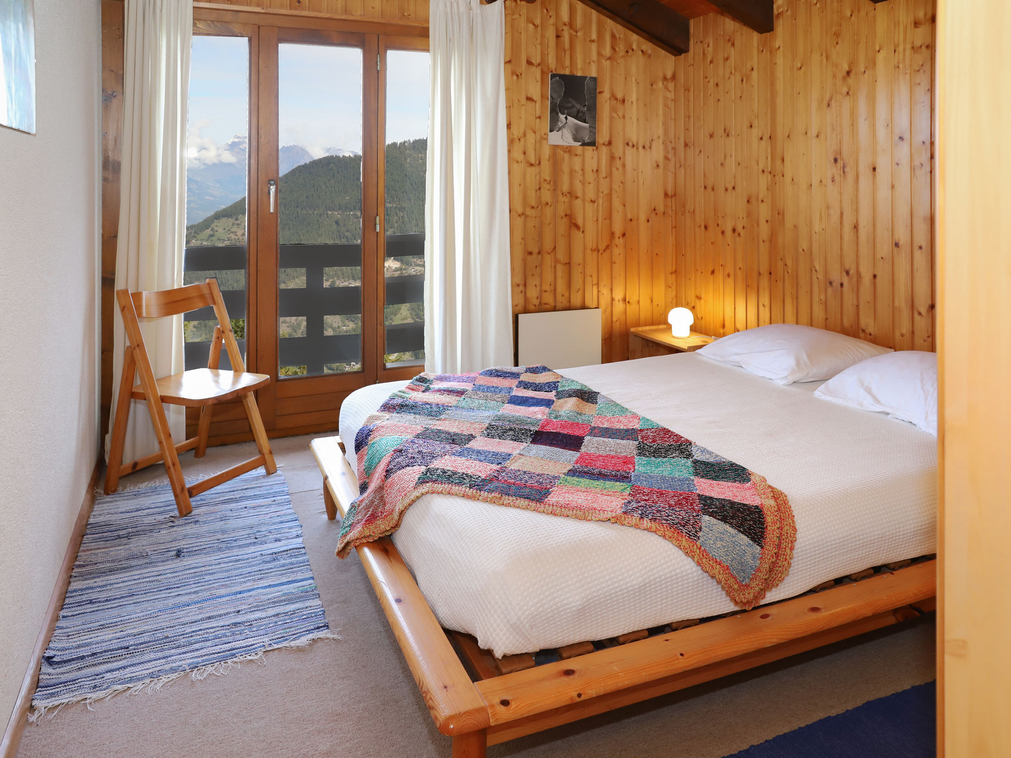 Chalet 6 locali 90 m2 su 2 piani. Arredamento confortevole e accogliente: soggiorno aperto con camino, TV (satellite) e tv con canali internazionali. Sala da pranzo aperta. Uscita sulla terrazza. Cucina aperta (forno, lavastoviglie, 4 piastre cottura in vetroceramica, forno a microonde, congelatore, macchina da caffè elettrica, set per raclette, set per fondue (formaggio)). Doccia/WC. Piano superiore: 1 camera con 2 letti. Uscita sul balcone. 1 camera piccola con 1 x 2 letti a castello. 1 camera con 1 x 2 letti a castello. 1 camera con 1 letto alla francese (140 cm). Uscita sul balcone. Doccia/WC. Balcone, esposizione est, grande patio. Mobili da terrazza, barbecue (portatile). Magnifica vista panoramica sulle montagne e sul paesaggio. A disposizione: Internet (wifi, gratis). Parcheggio vicino alla casa. Prego notare: appartamento per non fumatori.