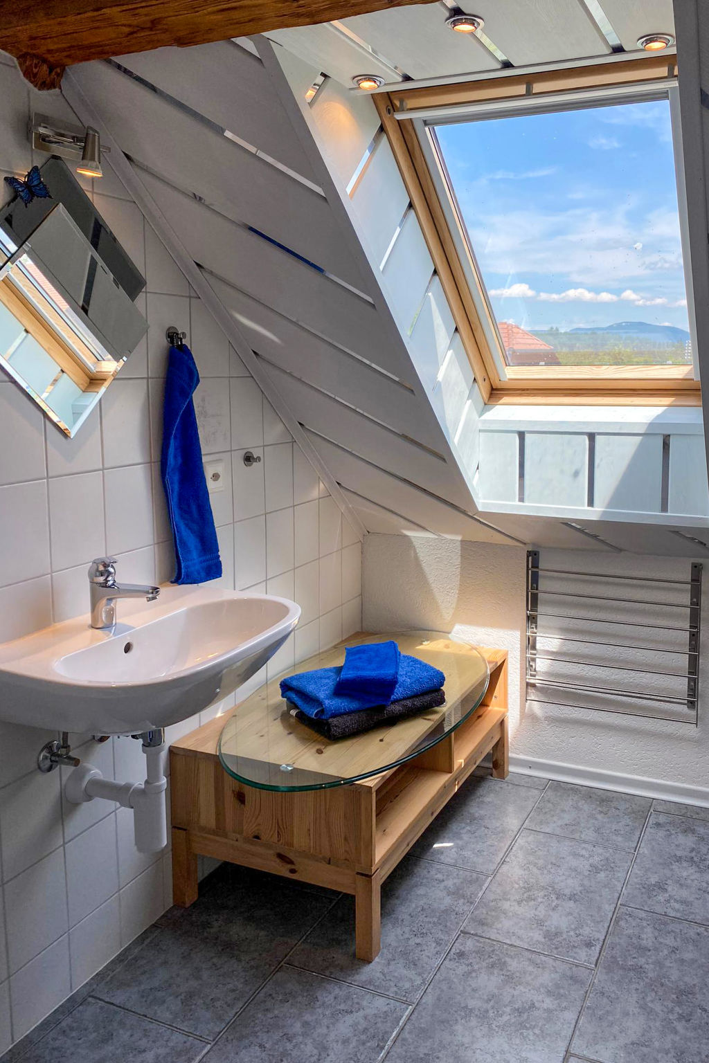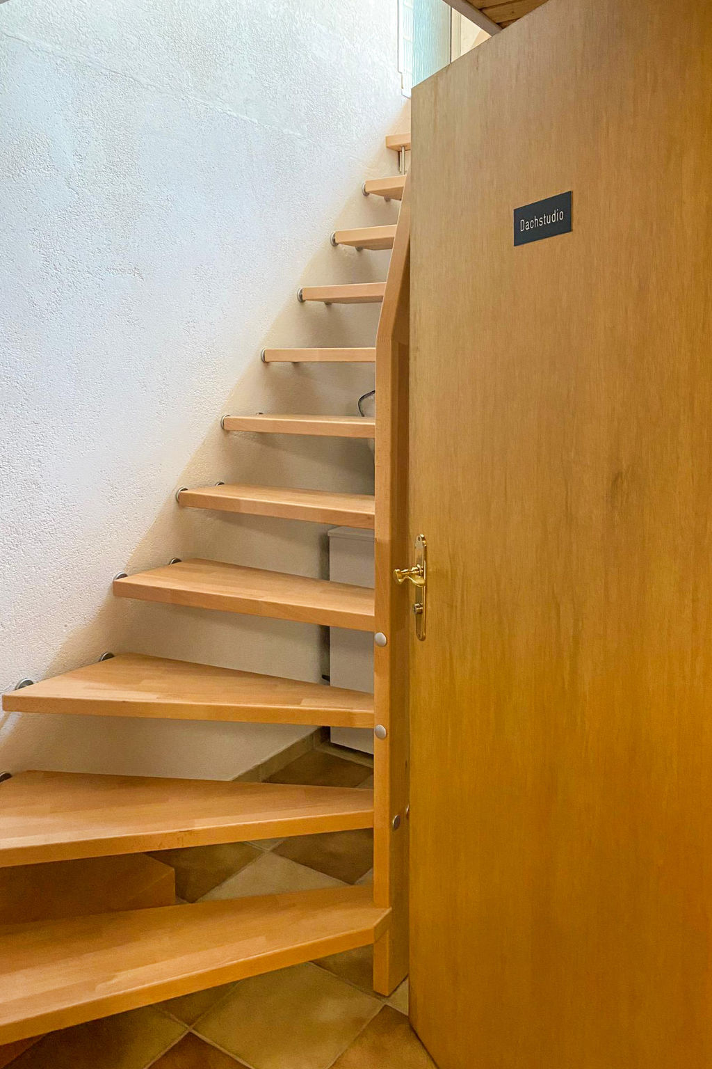 "Arn's Dachstudio" monolocale 63 m2 al 3. piano. Arredamento di buon gusto e accogliente: soggiorno/sala da pranzo con 1 letto doppio e TV (satellite) (schermo piatto). Cucina aperta (2 piastre cottura in vetroceramica, microonde combinato) con tavolo da pranzo. Doccia/WC. Vista sul paesaggio e sulla località. A disposizione: Internet (wifi, gratis). Parcheggio (1 Auto) vicino alla casa. Prego notare: non adatto a bambini al di sotto dei 10 anni. Appartamento per non fumatori. Per motivi di sicurezza, il monolocale mansardato viene affittato solo a non fumatori.