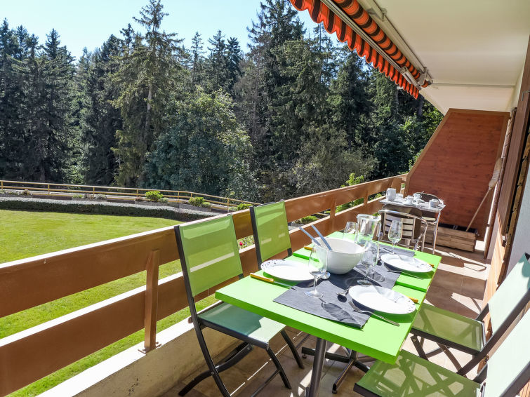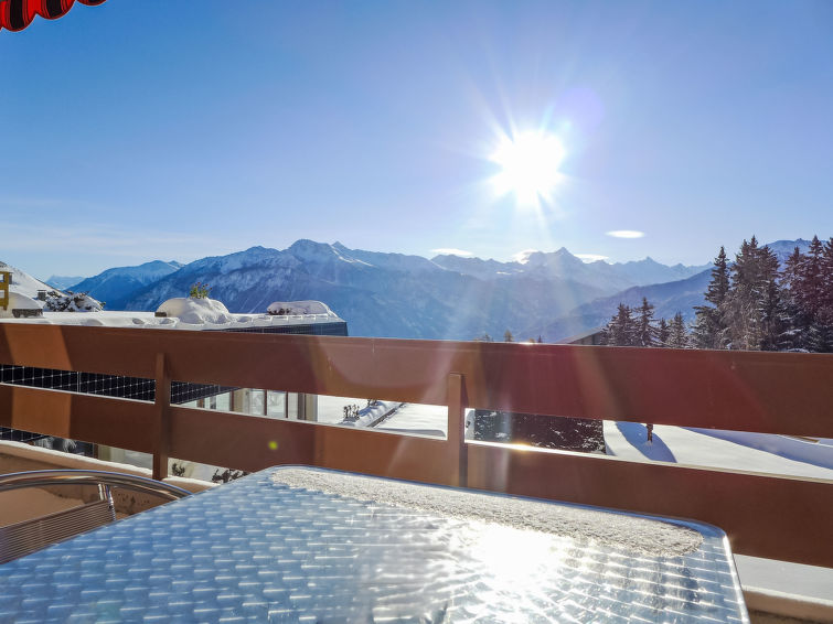 Piscina (circa 26°) e idromassaggio (dai 16 anni) chiuse a novembre. L'edificio è stato costruito su un terreno in pendenza. I piani sono considerati livelli numerati a partire dal piano dell'abitazione. In caso di forti nevicate è vietato sgomberare la neve dalle terrazze secondo le disposizioni dell'amministrazione. Condominio terrazzato "Terrasse des Alpes". Nella frazione Marigny, a 400 m dal centro di Montana, posizione soleggiata, a 1.5 km dal lago, a 1.5 km dall'area sciistica, esposizione sud-ovest. In comune: piscina coperta riscaldata (12 x 5 m, disponibilità stagionale: 01.Gen. - 31.Ott. e 16.Dic. - 31.Dic. orari di apertura piscina: 08:00-20:00). Vasca idromassaggio, terrazza. Nella casa: sala comune, ascensore, deposito sci, riscaldamento centralizzato, lavatrice, asciugatrice (in comune, extra). Negozio, supermercato, ristorante, bar, cafe 400 m, 5 minuti a piedi dal centro, fermata bus "Montana Poste" 300 m, stazione ferroviaria "Funiculaire Montana Gare" 450 m, lago balneabile "Moubra" 1.5 km. Campo da golf (18 buche) 3.8 km, impianti di risalita 1.5 km. Prego notare: skibus gratuito.