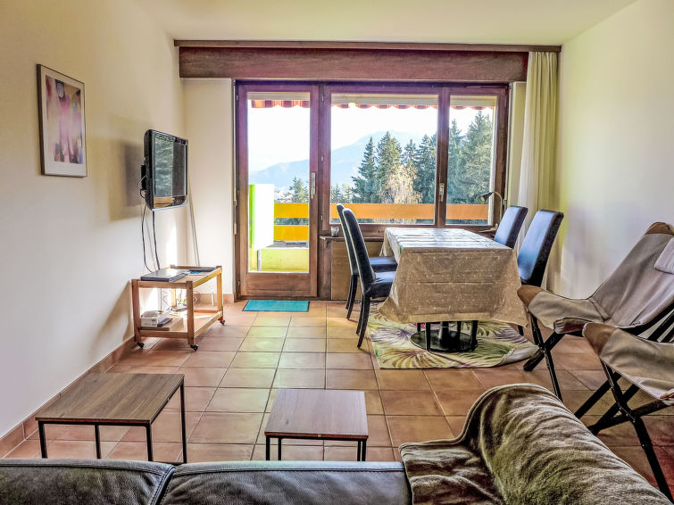 "Terrasse des Alpes 2006", apt. di 2 locali 49 m2 al 7. piano. In parte restaurato nel 2020, arredamento confortevole e gradevole: soggiorno/sala da pranzo con 1 divano letto (140 cm, lunghezza 190 cm), TV (via cavo), radio e DVD. Uscita sul balcone. 1 camera con 1 letto alla francese (180 cm, lunghezza 200 cm). Uscita sul balcone. Cucina aperta (4 punti cottura, forno, lavastoviglie, tostapane, bollitore elettrico, forno a microonde, macchina da caffè elettrica, capsule per la macchina da caffè (Nespresso) extra, set per raclette, set per fondue (chinoise, formaggio)). Doccia/WC. Balcone 10 m2, esposizione sud. Mobili da balcone. Bella vista sulle montagne. A disposizione: asciugacapelli. Internet (wifi, gratis). Garage nr. 73, altezza 200 cm, larghezza 230 cm. Prego notare: appartamento per non fumatori. Massimo 1 animale/cane consentito.
