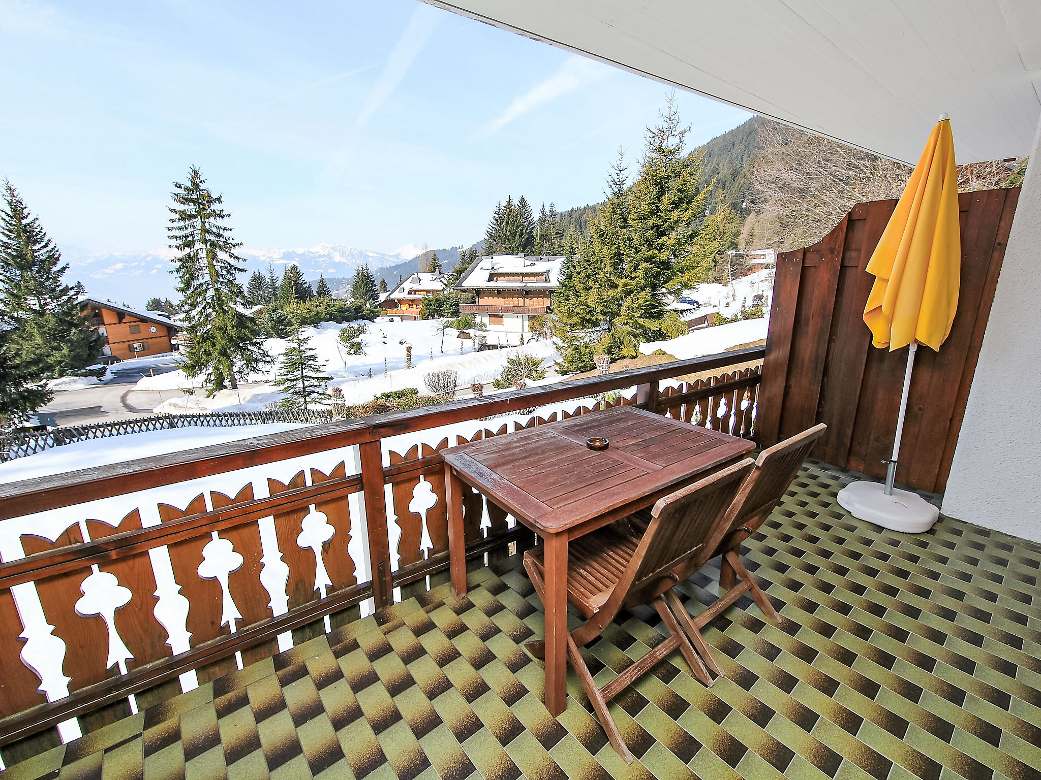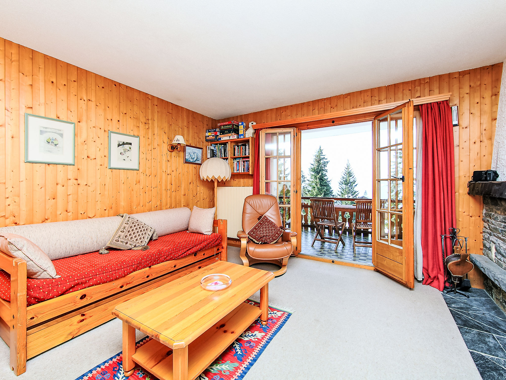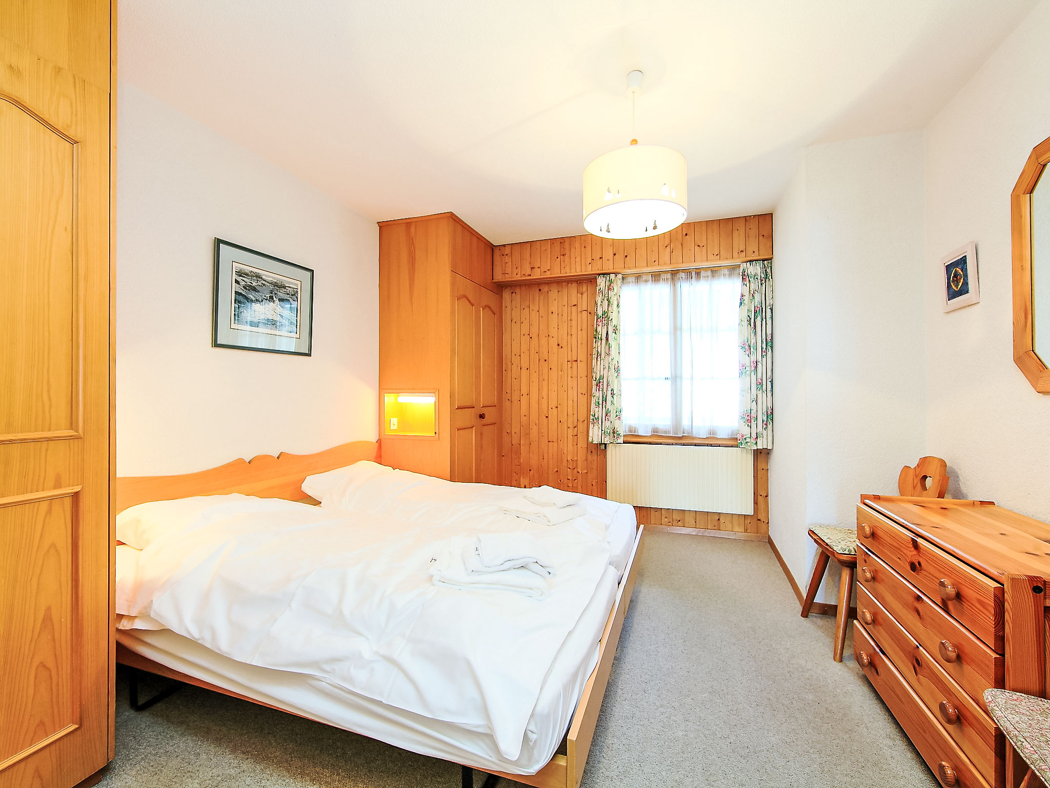"Sapin Bleu 6", apt. di 2 locali 60 m2 al 1. piano, esposizione sud. Arredamento gradevole e accogliente: soggiorno/sala da pranzo con 1 letto estraibile (2 x 80 cm), camino e TV (satellite) (schermo piatto), CD. Uscita sul balcone. 1 camera con 2 letti. Cucina aperta (4 punti cottura, forno, lavastoviglie, tostapane, bollitore elettrico, forno a microonde, macchina da caffè elettrica, set per raclette, set per fondue (formaggio)). Vasca/WC. Piccolo balcone 10 m2, esposizione sud. Splendida vista panoramica sulle montagne. A disposizione: asciugacapelli. Internet (wifi, gratis). Lettore blu-ray. Garage nr. 6, altezza 200 cm, larghezza 470 cm.