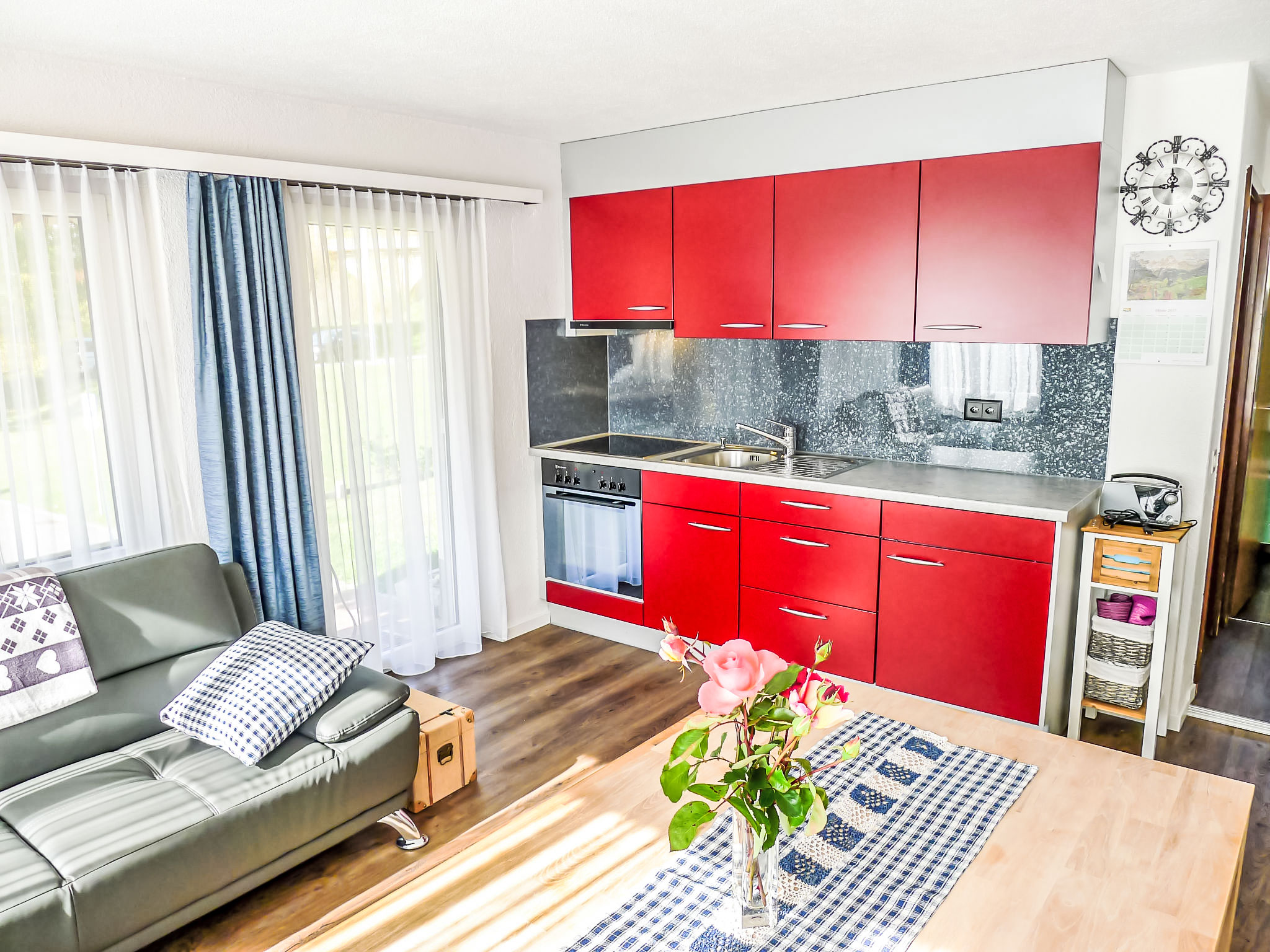 Apt. di 3 locali 60 m2, al pianterreno, esposizione sud. Restaurato nel 2019, arredamento di buon gusto e accogliente: soggiorno/sala da pranzo con TV (satellite) (schermo piatto). Uscita verso il patio. 1 camera matrimoniale. 1 camera con 1 letto e 1 x 2 letti a castello. Cucina aperta (forno, 4 piastre cottura in vetroceramica). Doccia/WC. Patio. Mobili da terrazza. Bella vista sulle montagne, sul paesaggio e sulla località. A disposizione: Internet (wifi, gratis). Parcheggio vicino alla casa. Prego notare: appartamento per non fumatori. Massimo 1 animale/cane consentito.