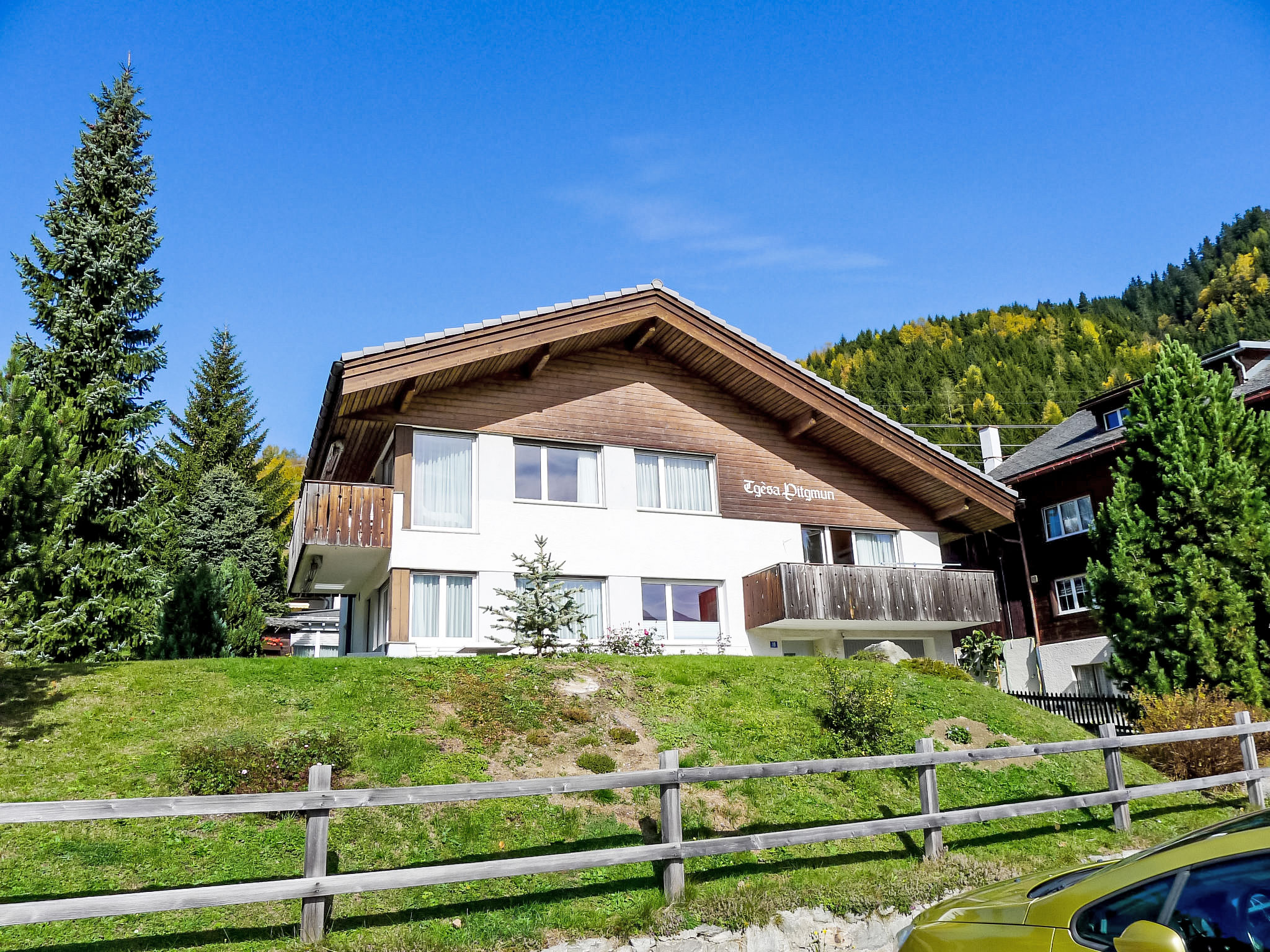 Chalet "Tgesa Pitgmun", 1'400 m s.l.m., piacevole su 2 piani. Nella località, posizione tranquilla, soleggiata sul pendio, a 200 m dall'area sciistica. Per uso privato: giardino con prato 80 m2. Nella casa: deposito sci, riscaldamento centralizzato. Accesso stretta fino alla casa. Parcheggio presso la casa. Negozio alimentare 300 m, ristorante 100 m, fermata bus "Sedrun, Tgèsa Communala" 600 m, stazione ferroviaria "Sedrun" 300 m, piscina coperta 20 m, laghetto naturale balneabile 2 km. Campo da golf (9 buche) 3 km, tennis 250 m, sentieri per passeggiate vicino alla casa 20 m, sciovia, impianti di risalita, piste da sci, noleggio sci, scuola di sci 200 m, pista di fondo 300 m, pattinaggio 500 m, parco giochi 100 m. Attrazioni nelle vicinanze: Rodelbahn Caischavedra 8 km, Hängebrücke La Pendenta 8 km. Rinomate località sciistiche: Ski Arena Andermatt/Sedrun/Disentis. Prego notare: il proprietario vive nello stesso immobile. Bogn Sedrun: Benessere, Spa, Sauna 20m.