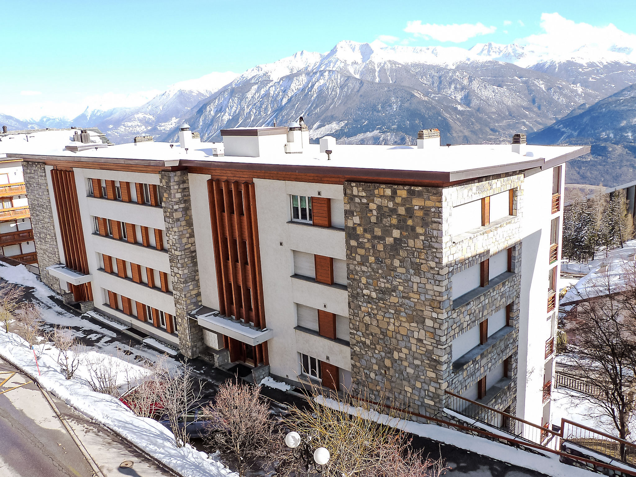 Casa plurifamiliare "Grand Large A/B". Nella località, a 200 m dal centro di Montana, posizione soleggiata, a 1.1 km dal lago, esposizione sud. Nella casa: ascensore, deposito sci, riscaldamento centralizzato, lavatrice, asciugatrice (in comune, extra), locale di asciugatura. Parcheggio (numero posti limitato). Negozio 200 m, supermercato 240 m, ristorante, panetteria 300 m, 2 minuti a piedi dal centro, fermata bus "Montana Poste" 100 m, stazione ferroviaria "Funiculaire Montana Gare" 210 m, lago balneabile "Moubra" 1.7 km, lago Grenon 1.1 km. Campo da golf (18 buche) 2.2 km, impianti di risalita 1 km. Laghi famosi: Lac de la Moubra 1.7 km, Etang Long 2.2 km. Prego notare: skibus gratuito. I piani sono considerati come livelli (calcolati dal fondo della residenza).