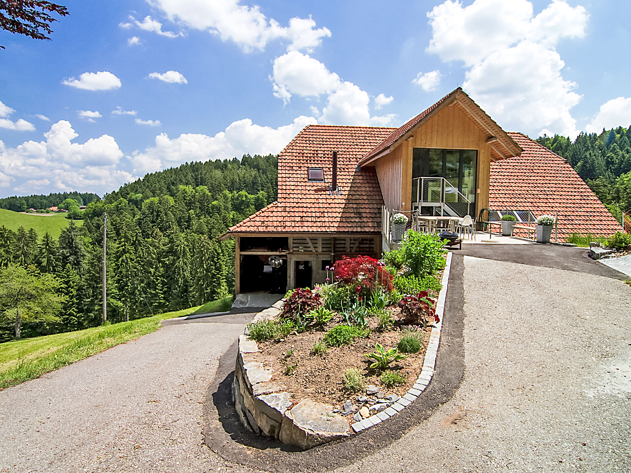 Casa colonica "Egggraben", 850 m s.l.m., piacevole, d'epoca su 3 piani, costruita nel 1919, ristrutturata nel 2011, circondata da alberi, prati e campi. A 3 km dal centro di Biembach im Emmental, posizione isolata, tranquilla sul pendio, a 10 m dal bosco, in una strada senza uscita. In comune: terreno allo stato naturale, giardino. Camino. Nella casa: riscaldamento centralizzato, lavatrice (in comune). Accesso ripida, stretta fino alla casa. Parcheggio presso la casa. Stazione di ricarica elettrica. Negozio alimentare 3 km, ristorante 5 km, fermata bus "Hasle b.B. Dorf" 6 km, stazione ferroviaria "Hasle-Rüegsau" 7 km. Attrazioni nelle vicinanze: Emmentaler Schaukäserei, Burgdorf 12 km, Bern 15 km. Sentieri escursionistici: Wanderwege ab Haus. Prego notare: auto consigliata. Adatto alle famiglie, dotazioni per bimbi su richiesta. Vendita di prodotti agricoli locali. Il proprietario vive nello stesso immobile. Animali nei dintorni. Nota: in inverno l'auto può essere parcheggiata anche nel cortile inferiore. A piedi dall'alloggio: 10 minuti. Si prega di notare: ci sono gatti che vivono nella proprietà.