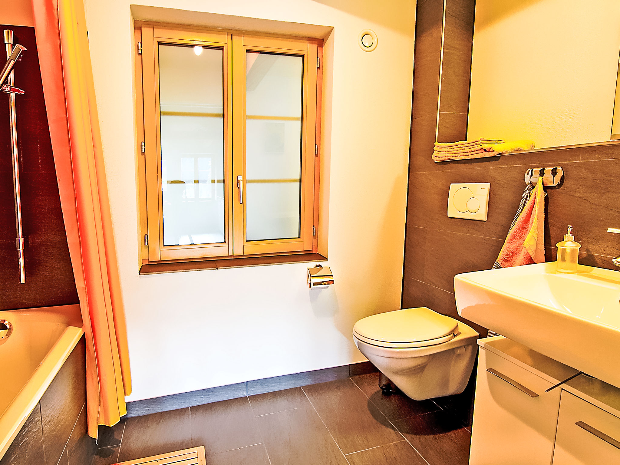 Apt. di 2 locali 53 m2, al pianterreno. Arredamento di buon gusto e accogliente: soggiorno con 2 letti e stufa di maiolica. 1 camera con 1 letto alla francese (160 cm). Cucina aperta (lavastoviglie, 4 piastre cottura in vetroceramica, forno a microonde, macchina da caffè elettrica, set per raclette, set per fondue (formaggio)) con tavolo da pranzo. Uscita sulla terrazza. Vasca/WC. Terrazza. Mobili da terrazza. Bella vista sul paesaggio e sul bosco. A disposizione: legna (extra). Internet (wifi, gratis). Parcheggio vicino alla casa. Prego notare: adatto alle famiglie. Appartamento per non fumatori. Massimo 2 animali/cani consentiti. WLAN non adatta per lo streaming.