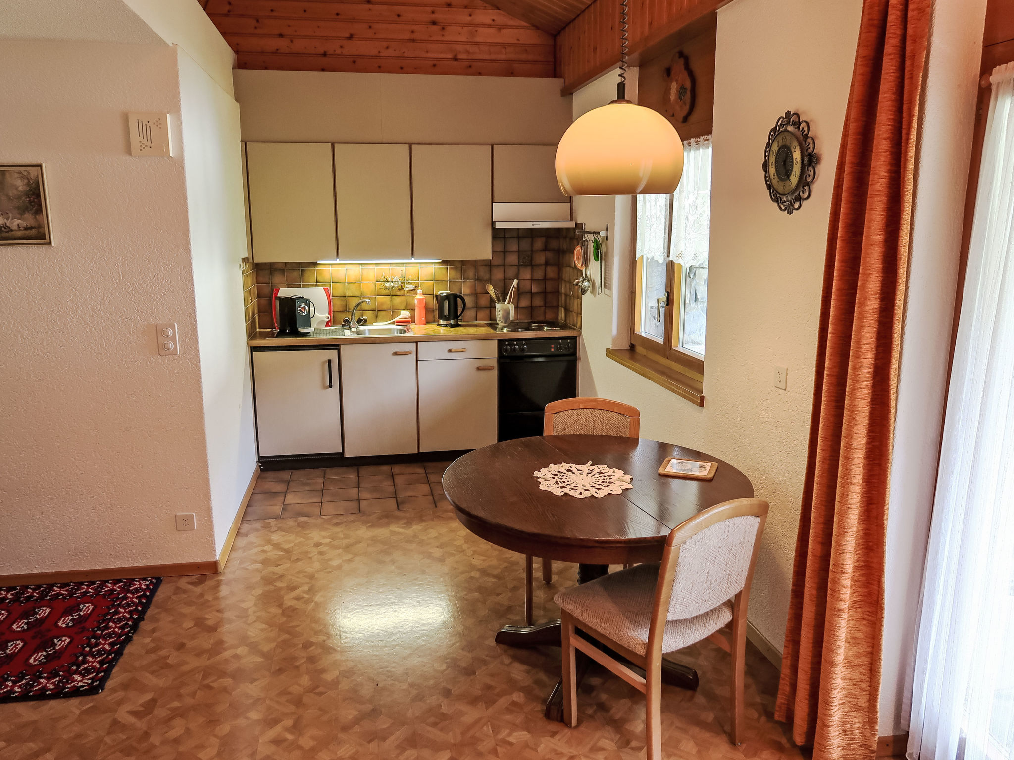 Attico di 2 locali 60 m2 su 2 piani al 2. piano. Arredamento accogliente: soggiorno/sala da pranzo con TV (via cavo) e schermo piatto. Uscita sul balcone, esposizione est. Cucina aperta (3 punti cottura, forno, macchina da caffè elettrica, capsule per la macchina da caffè (Delizio) extra). Doccia/WC. Piano superiore: (scala a chiocciola) 1 camera matrimoniale mansardata con 2 letti. WC separato. Balcone. Mobili da balcone. Splendida vista sulle montagne e sulla località. A disposizione: asciugacapelli. Internet (wifi, gratis). Prego notare: appartamento per non fumatori. Massimo 2 animali/cani consentiti.