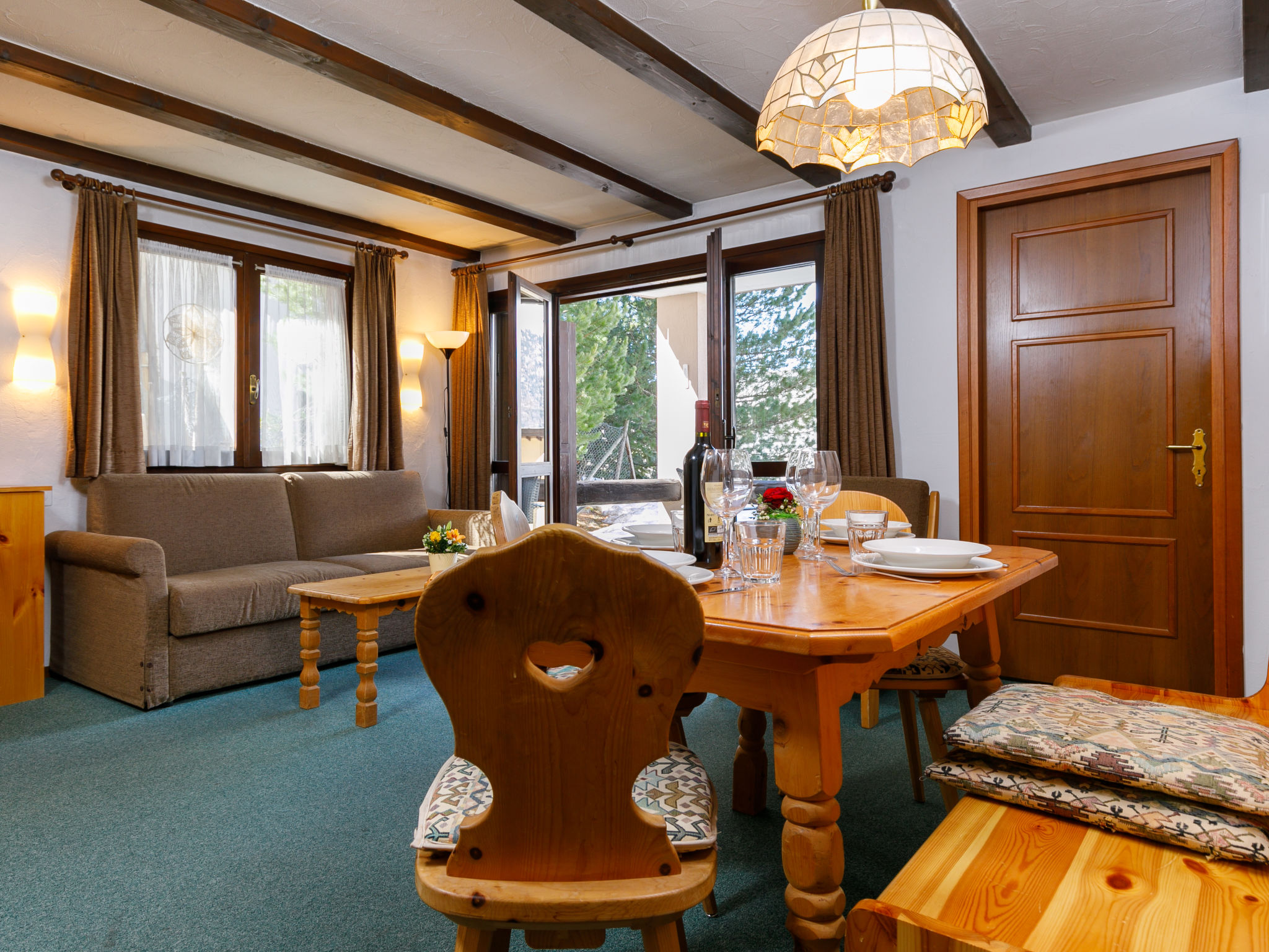 "Residenza Chesa Margun 77-2", apt. di 2 locali 49 m2, al pianterreno. Arredamento confortevole e accogliente: soggiorno/sala da pranzo con 1 divano letto (110 cm, lunghezza 190 cm), tavolo da pranzo e TV (via cavo) (schermo piatto), radio. Uscita sulla terrazza. 1 camera con 2 letti (90 cm, lunghezza 190 cm). Cucina (forno, lavastoviglie). Vasca/WC. Riscaldamento elettrico. Moquette. Terrazza, esposizione sud. Mobili da terrazza. Vista sulle montagne e sulla località. A disposizione: Internet (wifi). Prego notare: appartamento per non fumatori.