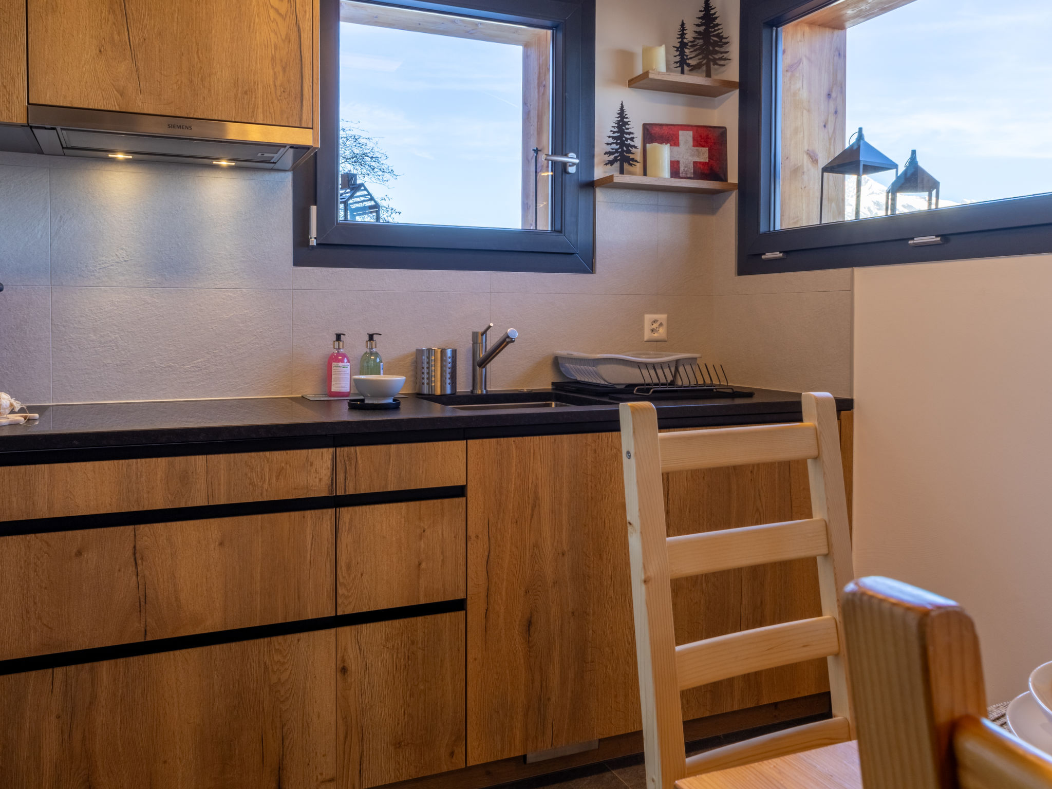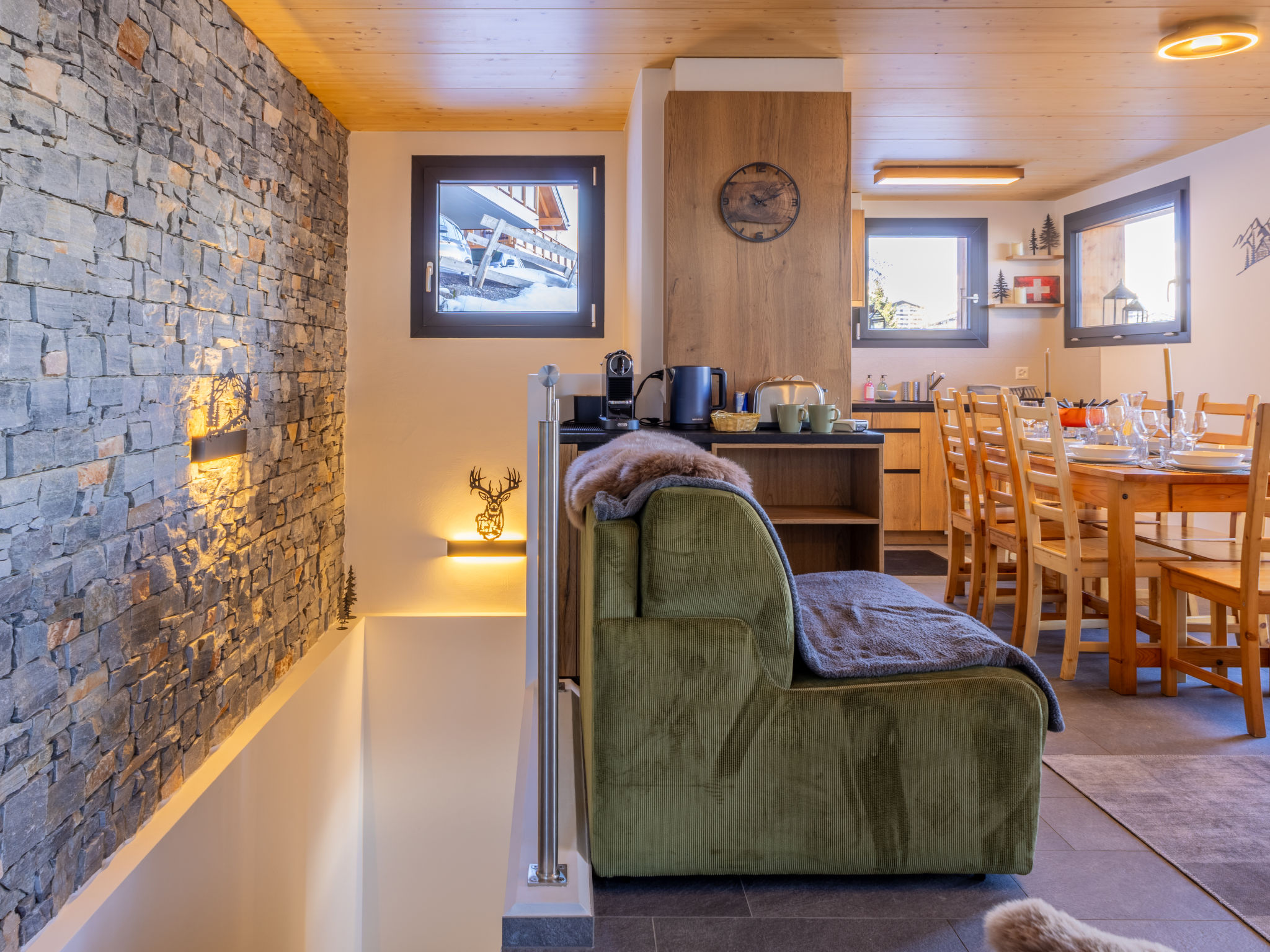 "Chalet Byzance", chalet 6 locali 150 m2 su 3 piani. Completamente restaurato nel 2025, arredamento confortevole e gradevole: piano inferiore: 1 camera con 1 divano letto (140 cm, lunghezza 200 cm). Uscita sul giardino. Doccia/WC. Piano superiore: soggiorno/sala da pranzo con stufa svedese e TV (satellite). Uscita sul balcone, esposizione nord. Studio. 1 camera con 1 letto doppio (160 cm, lunghezza 200 cm). Cucina aperta (forno, lavastoviglie, 4 piastre ad induzione, tostapane, bollitore elettrico, forno a microonde, macchina da caffè elettrica, capsule per la macchina da caffè (Nespresso), set per raclette, set per fondue (formaggio)). Uscita sulla terrazza, esposizione ovest. Doccia/WC. 2. piano superiore: 1 camera con 1 letto alla francese (2 x 90 cm, lunghezza 200 cm). 1 camera con 2 letti (90 cm, lunghezza 200 cm). Doccia/WC. Riscaldamento a pavimento. Balcone, terrazza, giardino. Splendida vista sulle montagne. A disposizione: lavatrice, asciugatrice, asciugacapelli. Internet (wifi, gratis). Parcheggio (2 Auto). Prego notare: appartamento per non fumatori.