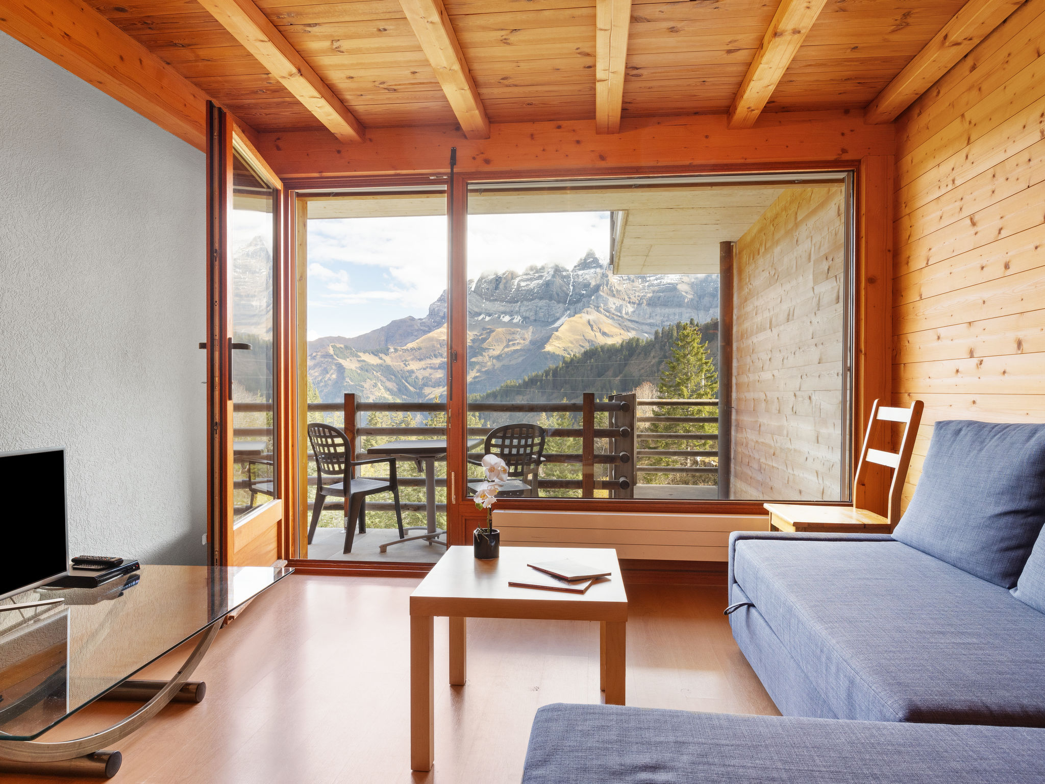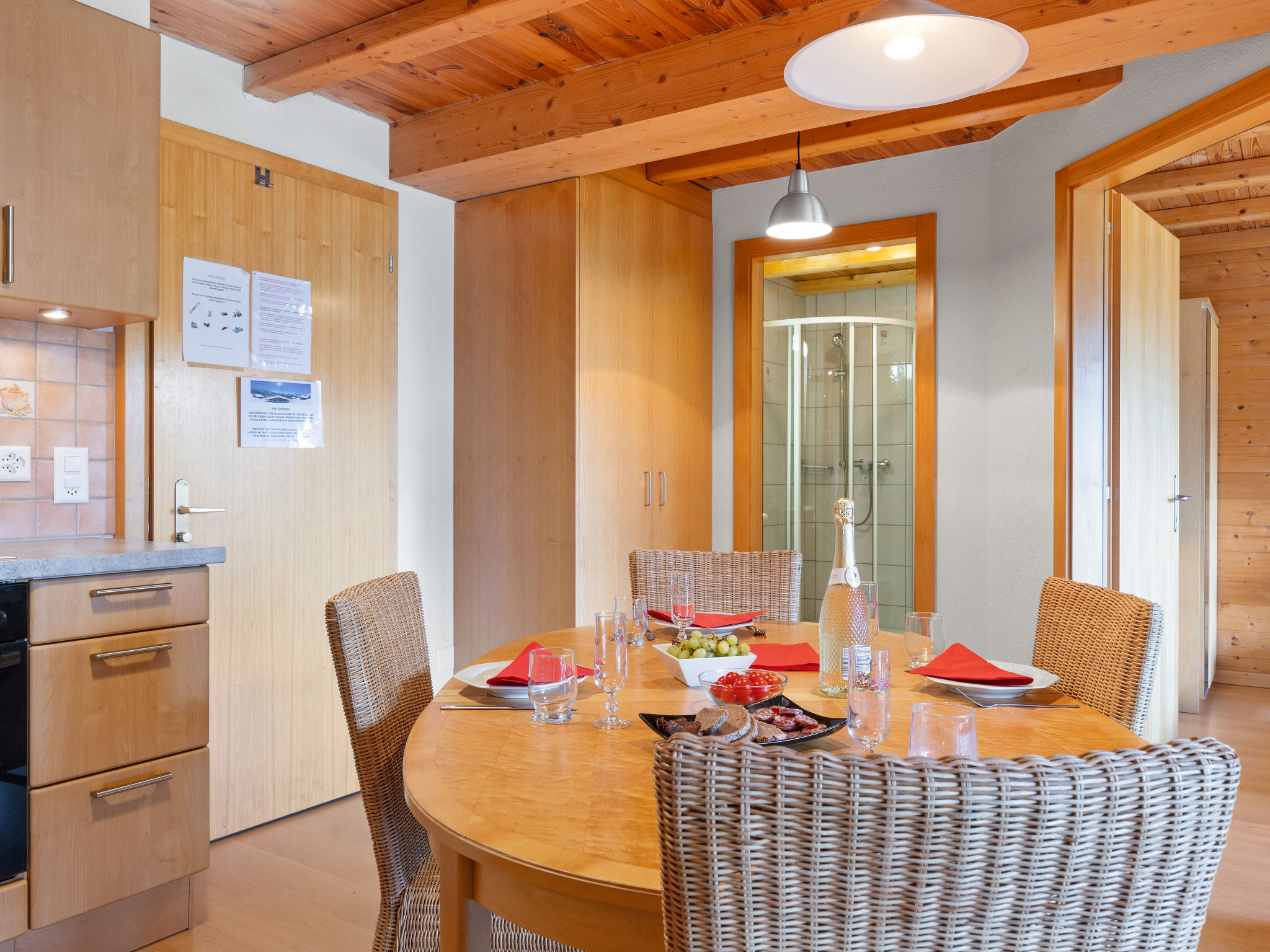 "Sundance 9", apt. di 2 locali 48 m2 al 1. piano. Oggetto adatto a 2 adulti + 2 bambini. Arredamento di buon gusto e accogliente: soggiorno/sala da pranzo con 1 divano letto (135 cm, lunghezza 180 cm), TV (via cavo), radio, CD e DVD. Uscita sul balcone. 1 camera con 1 letto doppio. Uscita sul balcone. Cucina aperta (forno, lavastoviglie, 4 piastre cottura in vetroceramica, macchina da caffè elettrica, capsule per la macchina da caffè (Nespresso) extra, set per raclette, set per fondue (chinoise, formaggio)). Doccia/WC. Riscaldamento elettrico, boiler. Balcone. Mobili da balcone. Splendida vista sulle montagne. A disposizione: asciugacapelli. Prego notare: appartamento per non fumatori.