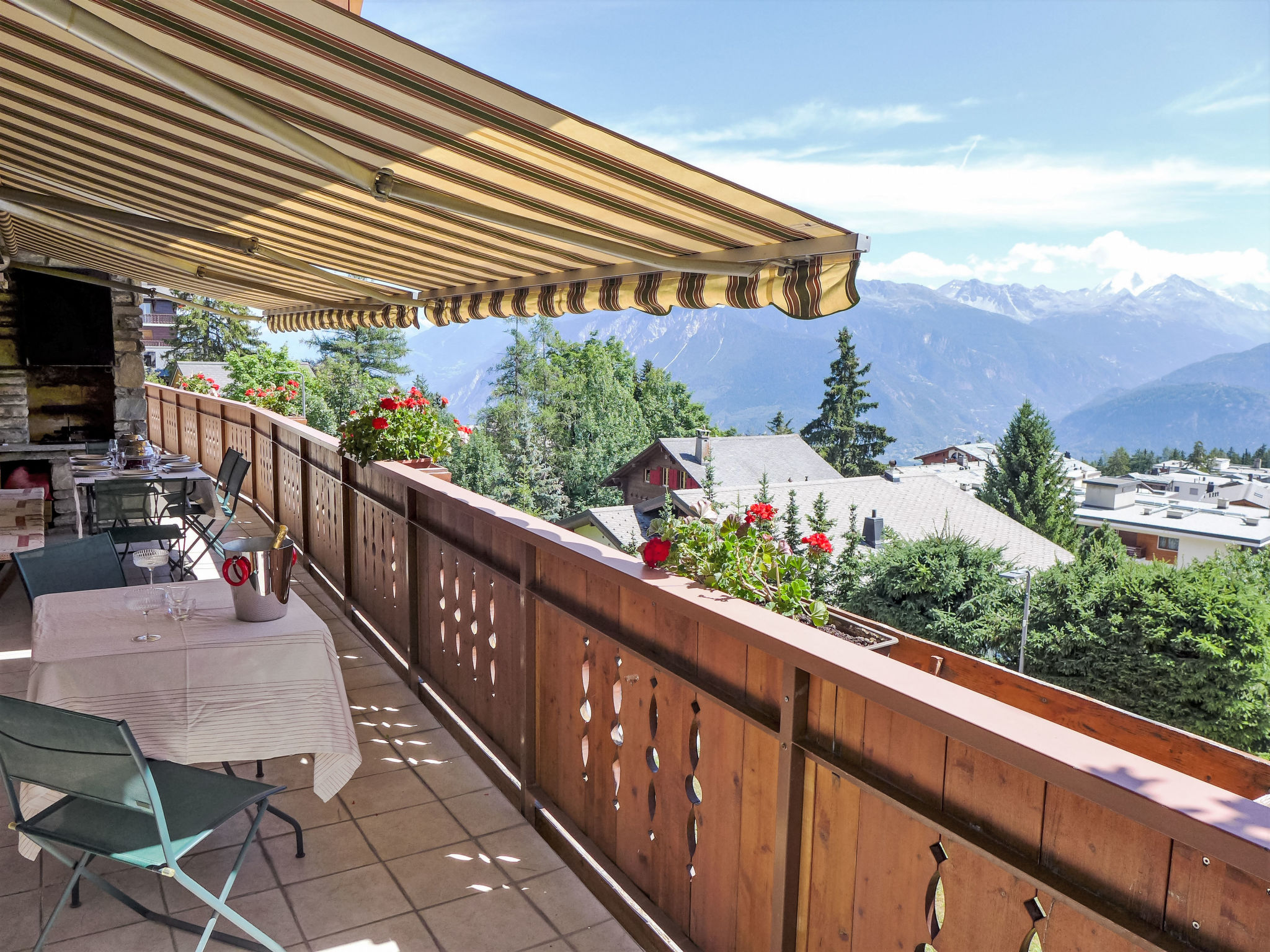 "Bridina n°1", apt. di 5 locali 160 m2 al 2. piano, esposizione sud. Spazioso e luminoso, arredamento di buon gusto e accogliente: soggiorno/sala da pranzo grande con TV (via cavo), schermo piatto, radio, CD, impianto stereo, raccolta di dvd a disposizione e Home cinema. Uscita sul balcone. 1 camera con 1 letto doppio (160 cm, lunghezza 200 cm). Uscita sul balcone. 1 camera con 1 letto doppio (160 cm, lunghezza 200 cm). Uscita sul balcone. 1 camera con 1 letto estraibile (2 pers. 2 x 90 cm, lunghezza 200 cm). Uscita sul balcone. 1 camera esposizione nord con 1 letto estraibile (2 pers. 2 x 90 cm, lunghezza 200 cm). Grande cucina aperta 30 m2 (forno, lavastoviglie, 4 piastre cottura in vetroceramica, tostapane, bollitore elettrico, forno a microonde, congelatore, macchina da caffè elettrica, capsule per la macchina da caffè (Nespresso) extra, cucina ad isola, set per fondue (chinoise, formaggio)). Uscita sul balcone, esposizione ovest. Vasca/WC, doccia, WC separato. Grande balcone, esposizione sud. Mobili da balcone. Splendida vista sulle montagne e sulla località. A disposizione: ferro da stiro, asciugacapelli. Internet (wifi, gratis). Parcheggio (2 Auto). Prego notare: appartamento per non fumatori.