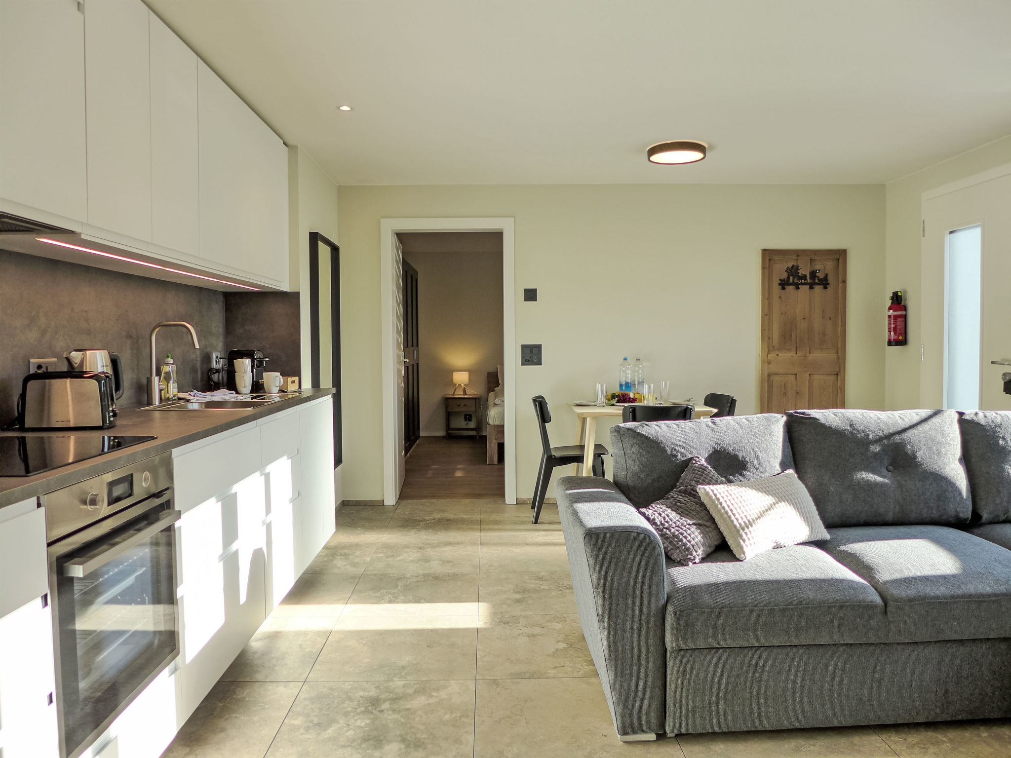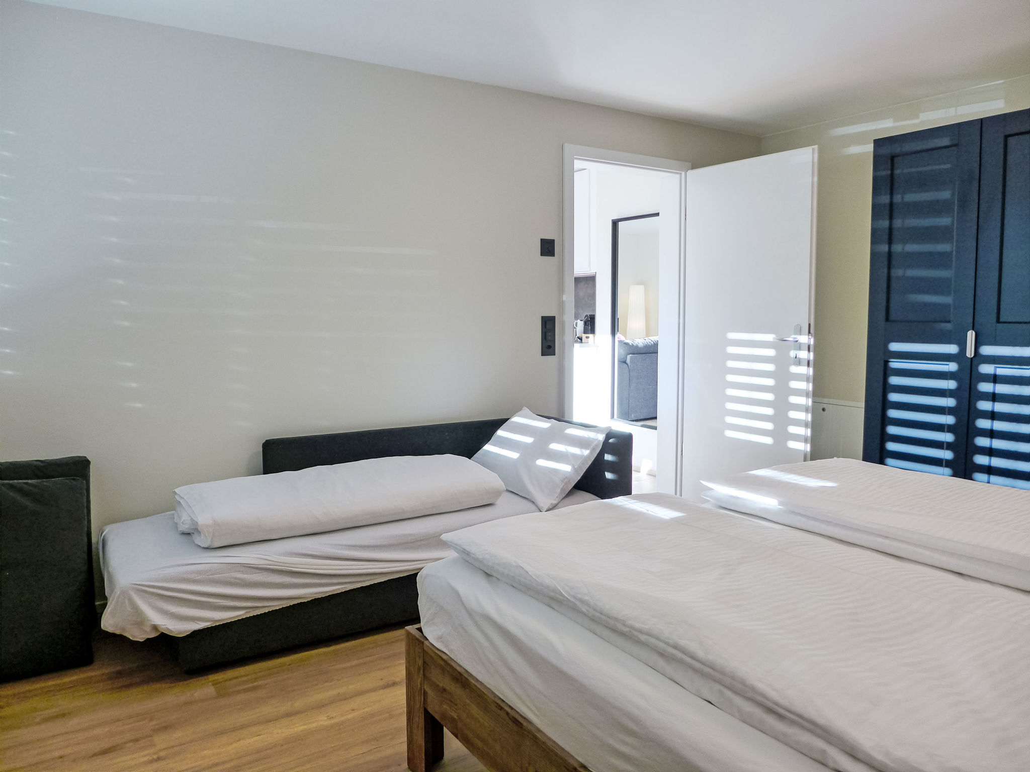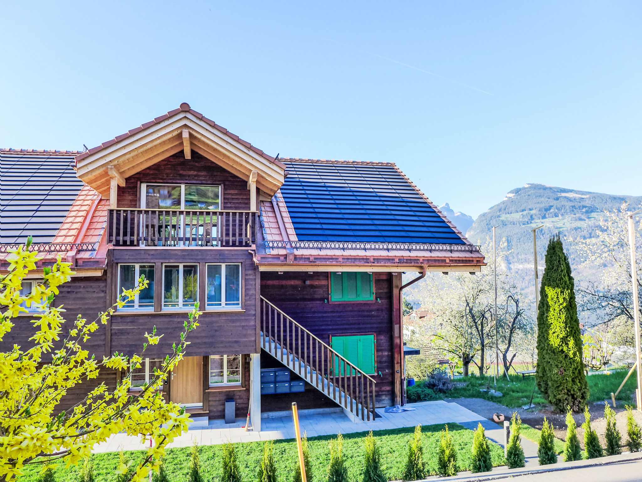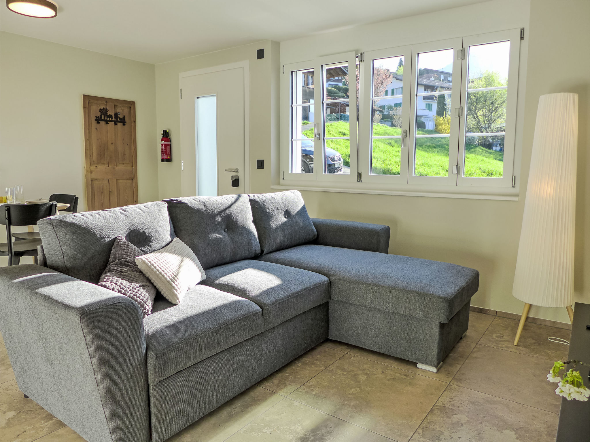 "Huus Chloster, Apt Niesen", apt. di 2 locali 50 m2, al piano seminterrato. Completamente restaurato nel 2025, arredamento molto confortevole e accogliente: soggiorno/sala da pranzo aperto con tavolo da pranzo, TV (via cavo) e tapparelle elettriche. Uscita sulla terrazza. 1 camera con 2 letti (90 cm, lunghezza 200 cm), 1 divano letto (80 cm, lunghezza 200 cm). Cucina aperta (forno, lavastoviglie, 4 piastre ad induzione, tostapane, bollitore elettrico, congelatore, macchina da caffè elettrica, capsule per la macchina da caffè (Nespresso) extra, set per raclette, set per fondue (formaggio)). Doccia/WC. Riscaldamento a pavimento. Corrente da energia solare. Piccola terrazza, esposizione ovest. Magnifica vista sul lago, sulle montagne e sul paesaggio. A disposizione: seggiolone, lettino per bimbi fino 2 anni (extra), asciugacapelli. Internet (wifi, gratis). Parcheggio (1 Auto). Stazione di ricarica elettrica. Prego notare: appartamento per non fumatori. Estintore.