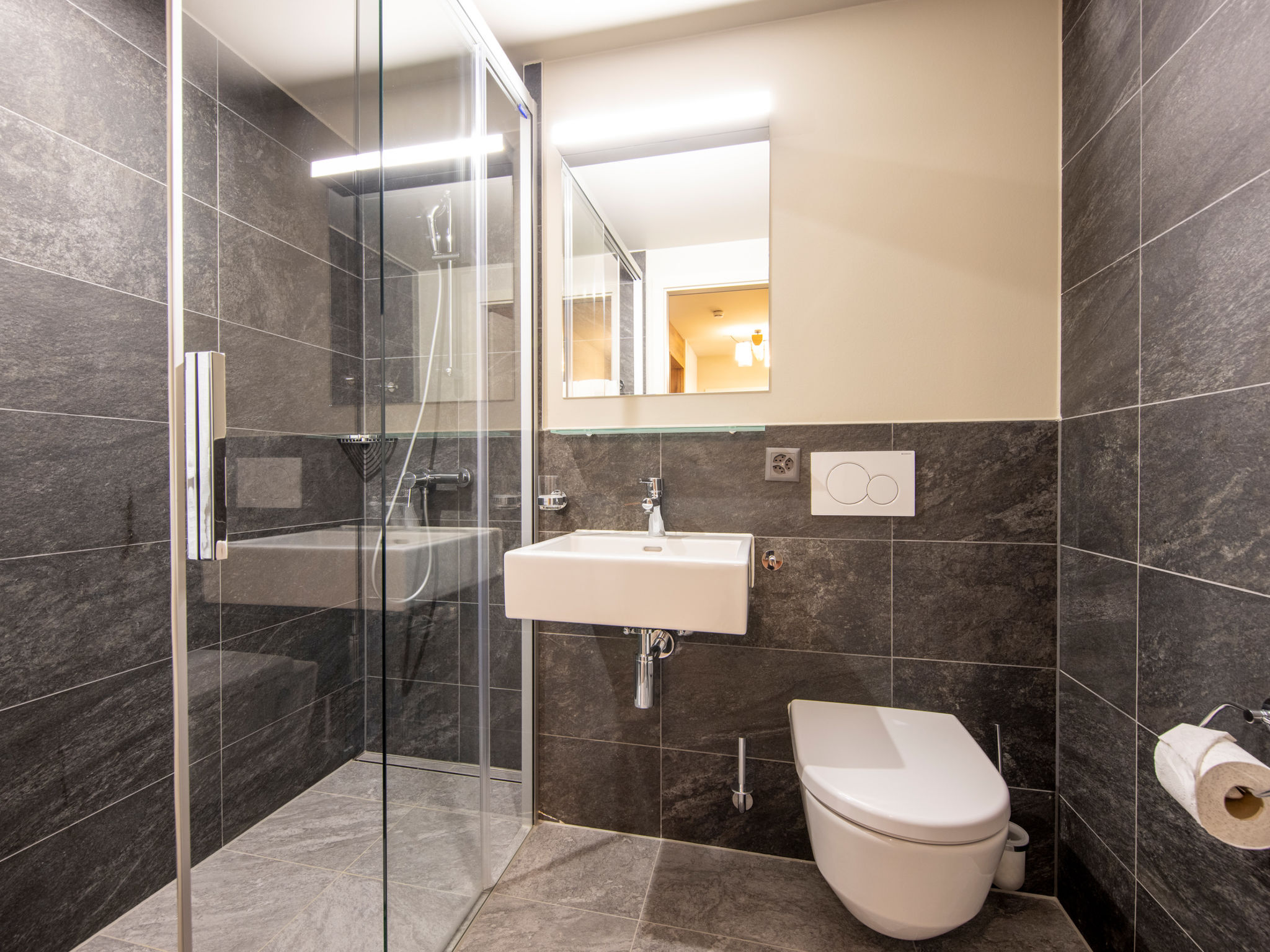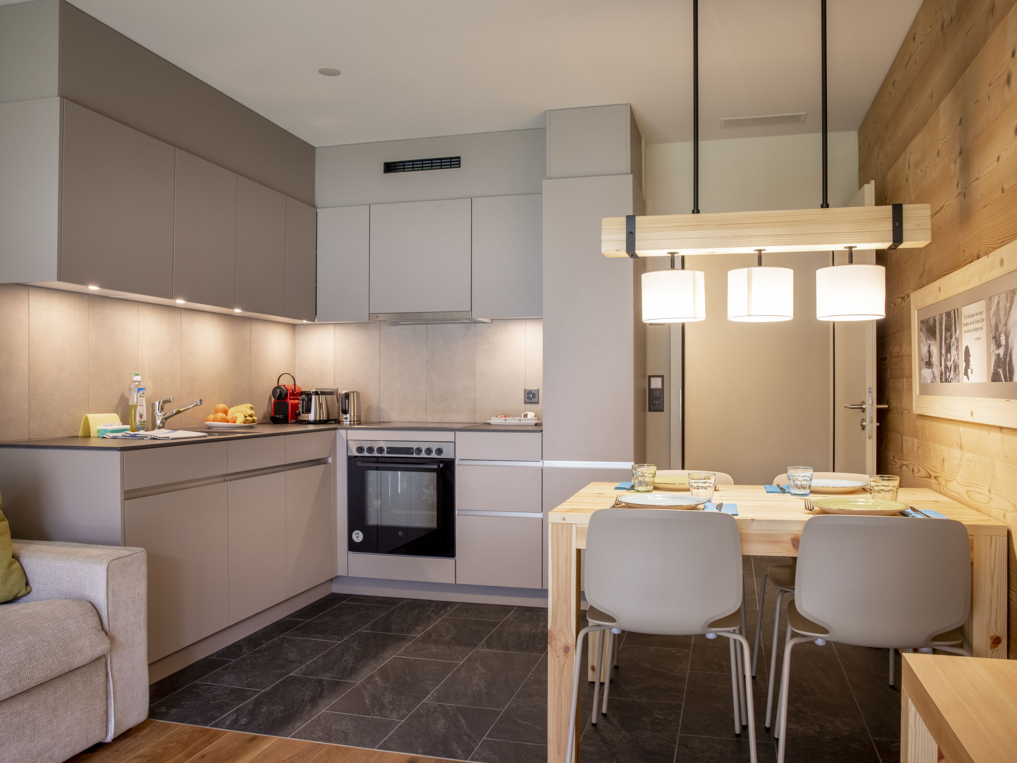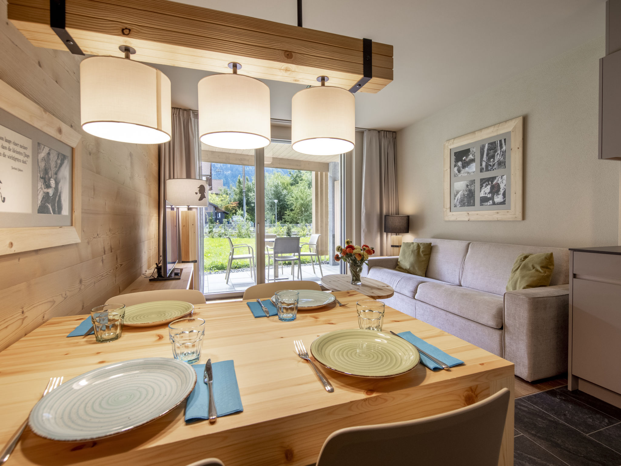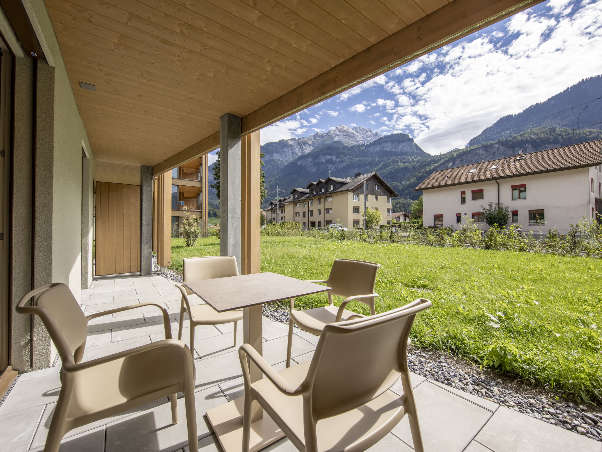 "2 room apartment STANDARD - Aare", apt. di 2 locali 39 a 44 m2. Arredamento confortevole e moderno: soggiorno/sala da pranzo con 1 divano letto doppio (160 cm, lunghezza 200 cm), tavolo da pranzo, tv con canali internazionali e schermo piatto. Uscita sul balcone, sulla terrazza. 1 camera con 1 letto doppio (2 x 90 cm, lunghezza 200 cm). Uscita sul balcone, sulla terrazza. Cucina aperta (forno, lavastoviglie, 4 piastre cottura in vetroceramica, macchina da caffè elettrica, capsule per la macchina da caffè (Nespresso) extra). Doccia/WC. Riscaldamento a pavimento. Pavimenti in parquet. Balcone 10 m2, esposizione sud-ovest o terrazza 12 m2, esposizione sud-ovest. Mobili da terrazza, mobili da balcone. Parziale vista sulle montagne. A disposizione: asciugacapelli. Internet (wifi, gratis). Prego notare: adatto alle famiglie. Casa per non fumatori. 1 animale/cane consentito. L'oggetto in affitto è una casa-tipo / un appartamento-tipo. Un set per fonduta (carne o formaggio) e un forno per raclette possono essere presi in prestito alla reception dietro pagamento di una cauzione.