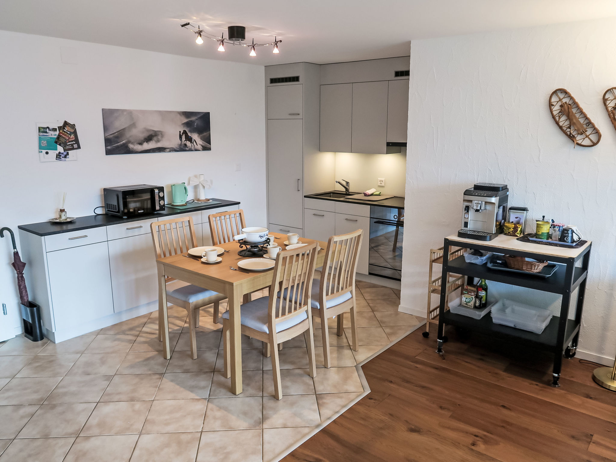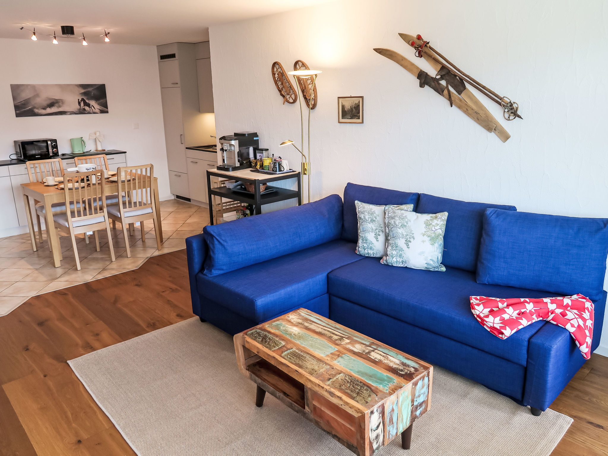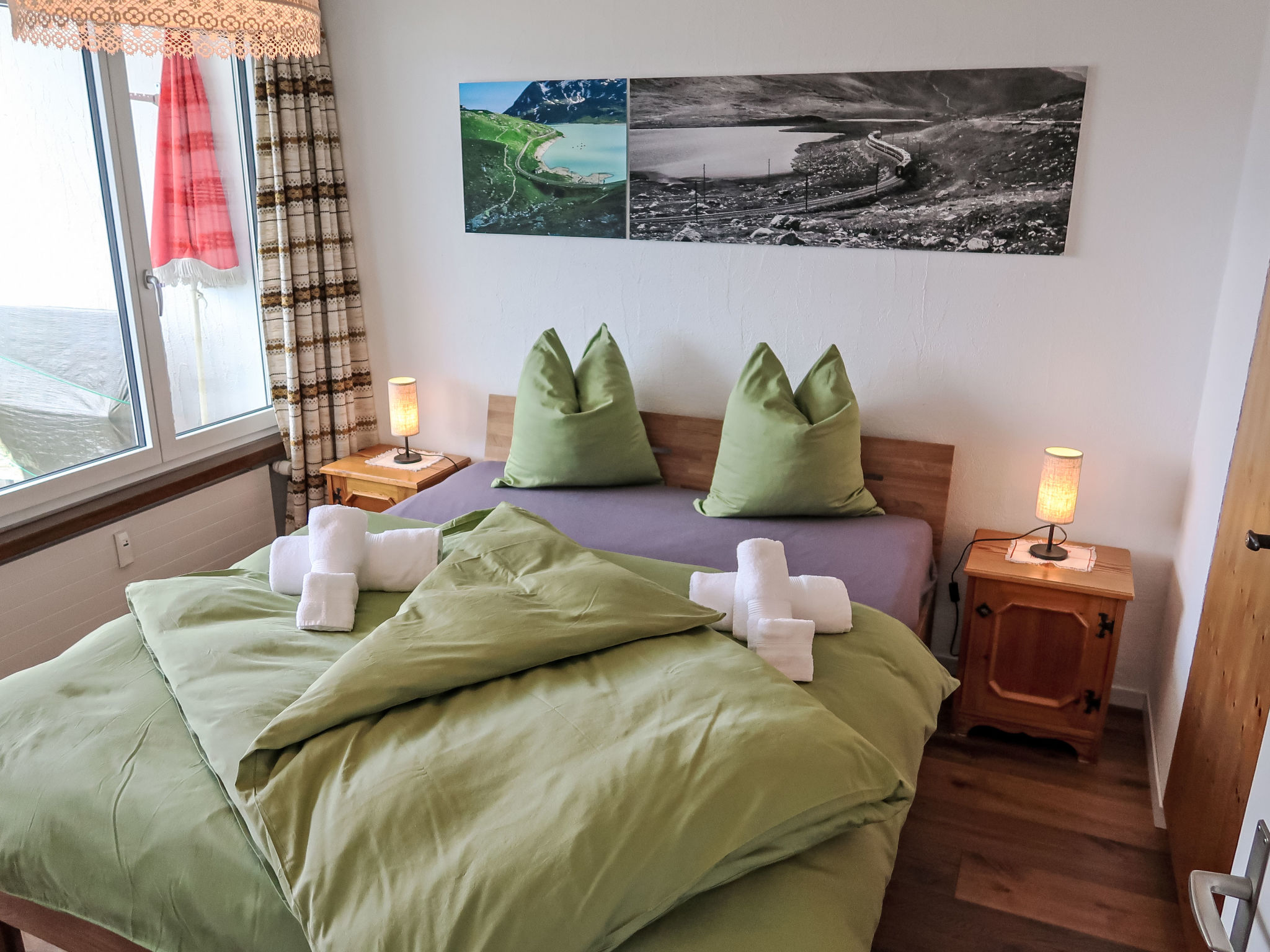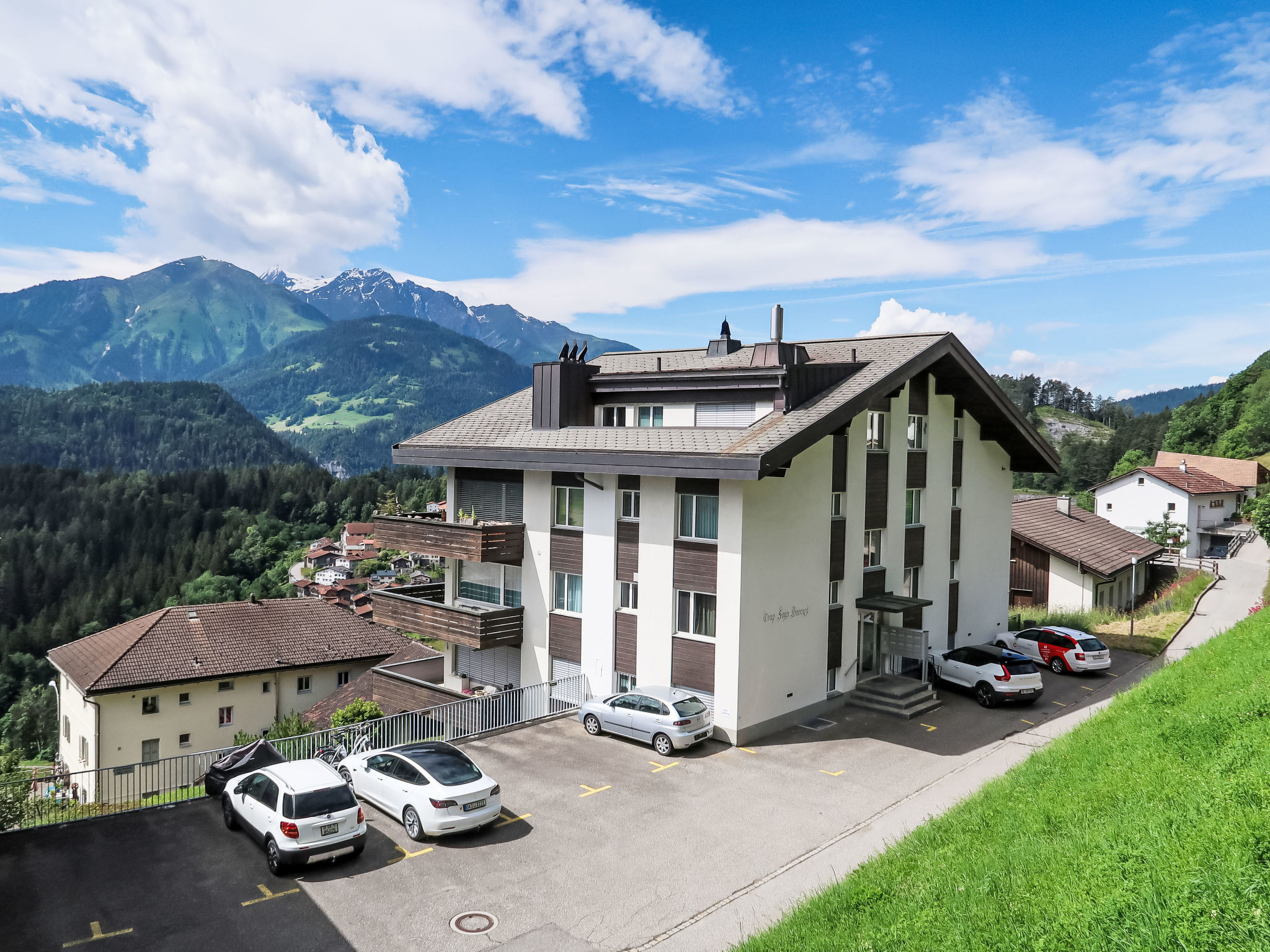 "Panorama da muntognas", apt. di 2 locali 59 m2 al 1. piano. Restaurato nel 2023, arredamento confortevole e accogliente: soggiorno/sala da pranzo con 1 divano letto doppio (140 cm), TV (via cavo) (schermo piatto). Uscita sul balcone. 1 camera con 1 letto doppio (160 cm, lunghezza 200 cm). Uscita sul balcone. Cucina aperta (forno, lavastoviglie, 4 piastre cottura in vetroceramica, tostapane, bollitore elettrico, forno a microonde, macchina da caffè elettrica, vaporiera, set per raclette, set per fondue (chinoise, formaggio)). Vasca/WC. Grande balcone, esposizione sud. Mobili da balcone, sedie a sdraio (2). Splendida vista panoramica sulle montagne, sulla valle, sul paesaggio e sulla località. A disposizione: ferro da stiro, asciugacapelli. Internet (wifi, gratis). Parcheggio (1 Auto) vicino alla casa. Prego notare: appartamento per non fumatori. Massimo 1 animale/cane consentito.