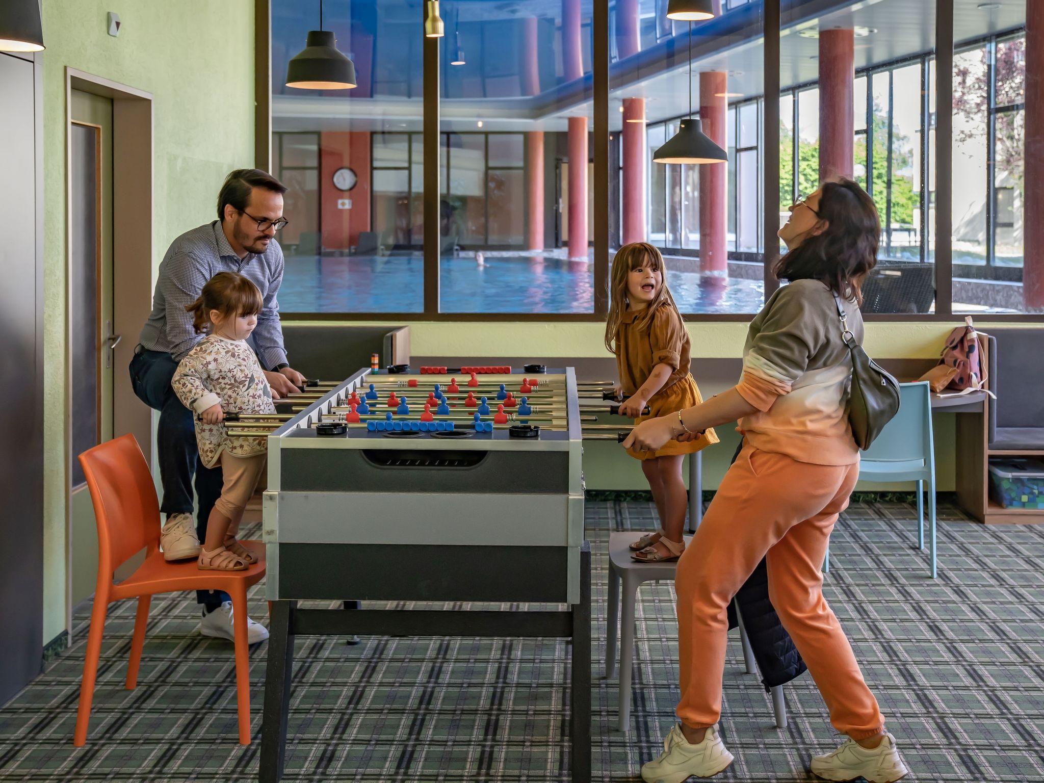 Apart-hotel "Dorint Hotel Blüemlisalp", moderno, confortevole. Fuori dalla località, a 2 km dal centro, posizione tranquilla, soleggiata sul pendio. In comune: grande giardino, piscina coperta. Spazio giochi per bambini. Nella struttura: reception, ristorante, bar, sala per colazione, sala comune, sauna, massaggio (extra). Sauna a raggi infrarossi, sala relax, area wellness, tennis tavolo, biliardo, sala giochi, ascensore, deposito biciclette, solarium, deposito sci, riscaldamento centralizzato, lavatrice, asciugatrice (in comune, extra). Cambio biancheria 1 volta a settimana. Colazione disponibile (extra). Parcheggio (in inverno extra), autorimessa. Stazione di ricarica elettrica. Fermata bus 10 m, stazione ferroviaria "Interlaken West" 12 km, piscina 14 km. Campo da golf (18 buche) 14 km, mini golf 50 m, sentieri per passeggiate vicino alla casa, telecabina 650 m, impianti di risalita 650 m, fermata ski bus 10 m. Attrazioni nelle vicinanze: Beatushöhlen, Interlaken, Jungfraujoch. Rinomate località sciistiche: Jungfrau-Region. Laghi famosi: Thuner- und Brienzersee. Sentieri escursionistici: Niederhorn, Hohgant, Via Jacobi. Prego notare: Ulteriori alloggi prenotabili.
