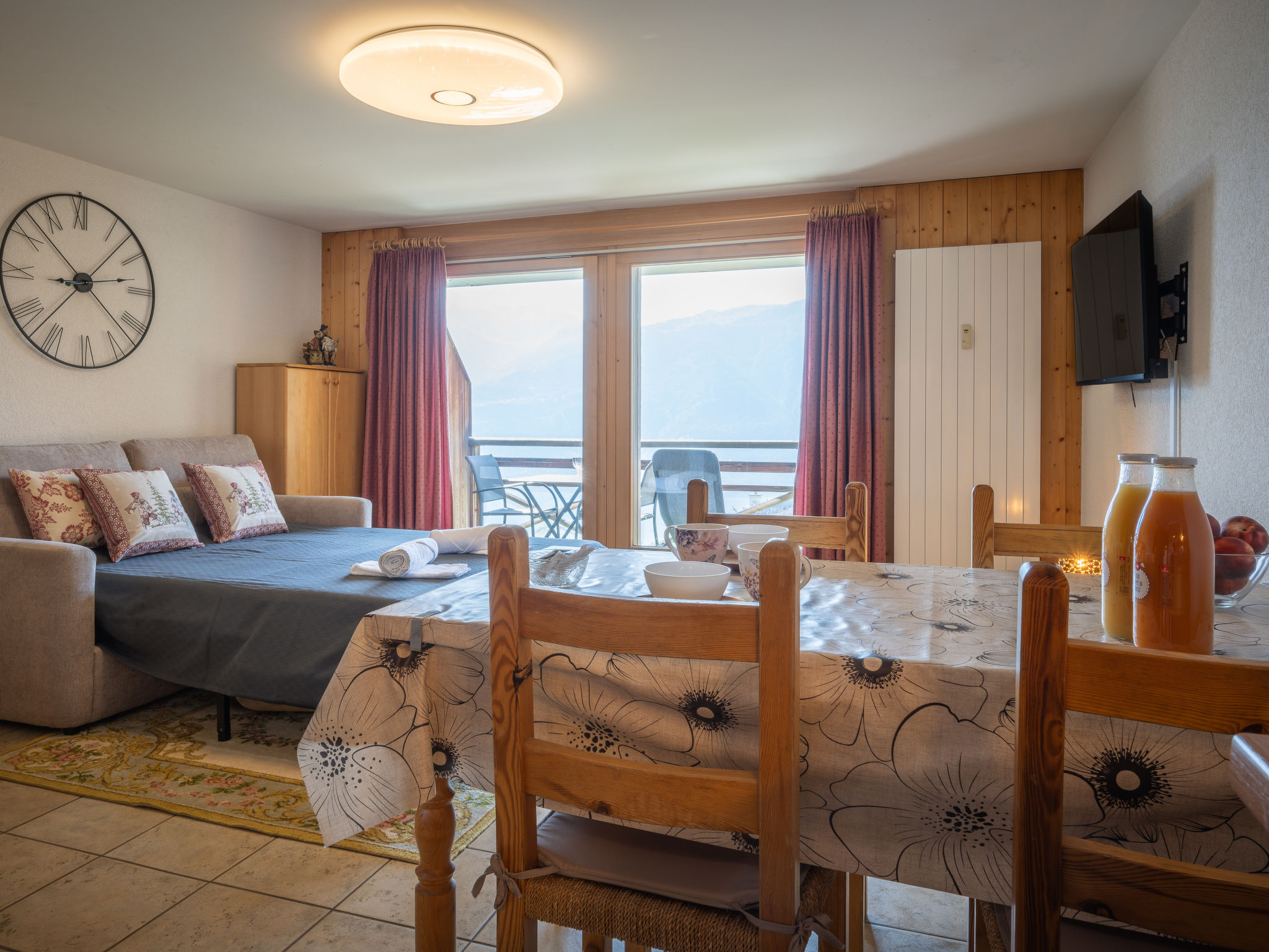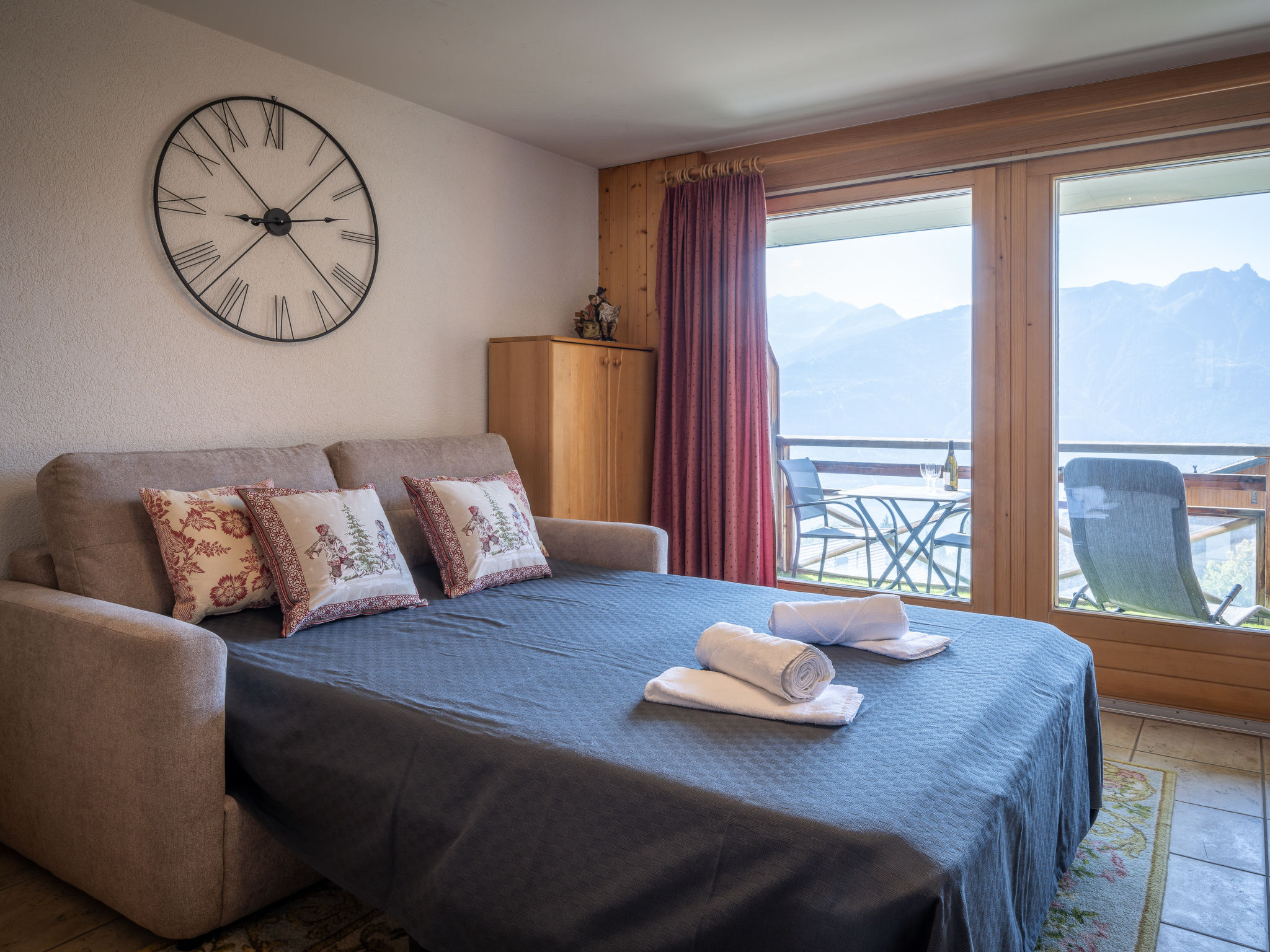 "Seya 21" monolocale 26 m2 al 2. piano, esposizione sud. Spazioso, arredamento confortevole e di buon gusto: soggiorno/camera con finestra panoramica con 1 divano letto (150 cm, lunghezza 190 cm), angolo pranzo, TV (via cavo) e schermo piatto. Uscita sul balcone, esposizione sud. Cucina aperta (forno, 4 piastre cottura in vetroceramica, tostapane, bollitore elettrico, forno a microonde, macchina da caffè elettrica, capsule per la macchina da caffè (Nespresso) extra, set per raclette, set per fondue (chinoise, formaggio)). Doccia/WC. Balcone 8 m2, esposizione sud. Mobili da balcone, barbecue elettrico (portatile), sedie a sdraio (2). Splendida vista sulle montagne e sulla valle. A disposizione: asciugacapelli. Internet (wifi, gratis). Garage nr. 21 (1 Auto), altezza 260 cm, larghezza 250 cm. Prego notare: appartamento per non fumatori.