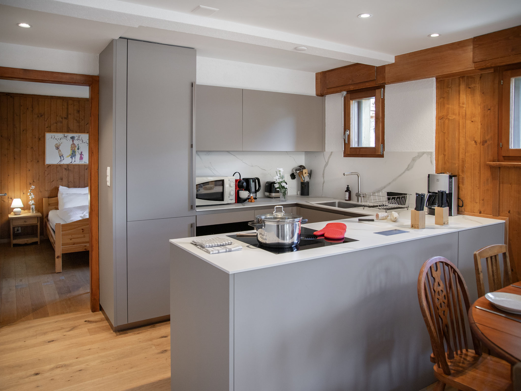"Val Fleuri 208", apt. di 4 locali 100 m2 al 2. piano, esposizione sud. Arredamento gradevole e di buon gusto: soggiorno/sala da pranzo grande con TV (via cavo) (schermo piatto). Uscita sulla terrazza. 1 camera grande con 1 letto doppio (1 x 160 cm, lunghezza 200 cm). Uscita sulla terrazza. 2 camere grandi, ogni camera con 2 letti (90 cm, lunghezza 200 cm). Cucina aperta (4 punti cottura, forno, lavastoviglie, tostapane, bollitore elettrico, forno a microonde, congelatore, macchina da caffè elettrica, capsule per la macchina da caffè (Nespresso) extra, set per raclette, set per fondue (formaggio)) con passavivande. Vasca/WC, doccia/WC. Riscaldamento, riscaldamento elettrico, riscaldamento a pavimento. Pavimenti in parquet. Splendida vista sulle montagne. A disposizione: lavatrice, asciugatrice, asciugacapelli. Internet (wifi, gratis). Parcheggio. Prego notare: appartamento per non fumatori.