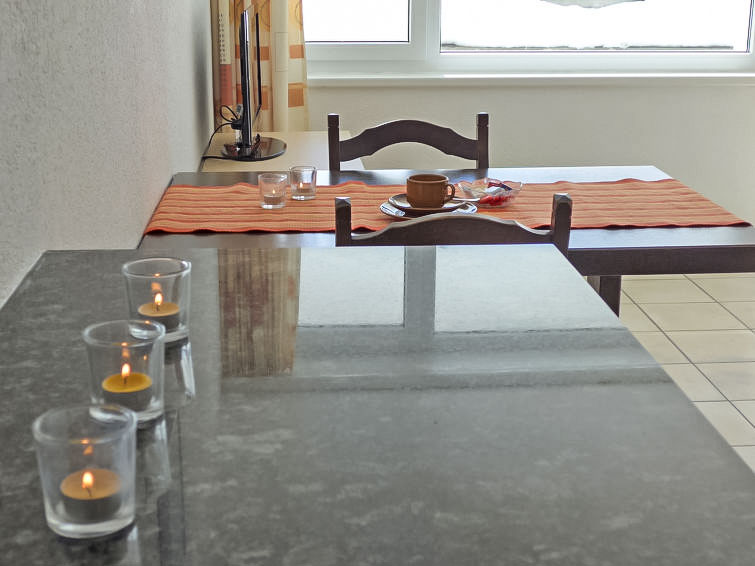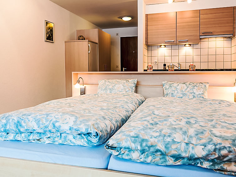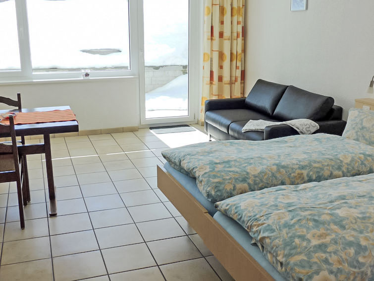 Monolocale 30 m2. Restaurato nel 2015, arredamento gradevole e accogliente: soggiorno/sala da pranzo con 2 letti (90 cm, lunghezza 190 cm), TV (satellite) e radio. Cucina aperta (forno, lavastoviglie, 4 piastre cottura in vetroceramica, macchina da caffè elettrica, capsule per la macchina da caffè (Nespresso) extra, set per fondue (formaggio)) con doccia/WC. Doccia/WC. Riscaldamento a pavimento. Balcone o terrazza, esposizione sud. Mobili da terrazza. Splendida vista sulle montagne. A disposizione: asciugacapelli. Internet (wifi, gratis). Parcheggio (1 Auto). Prego notare: appartamento per non fumatori. Massimo 1 animale/cane consentito. Le foto degli interni sono esempi di abitazione.