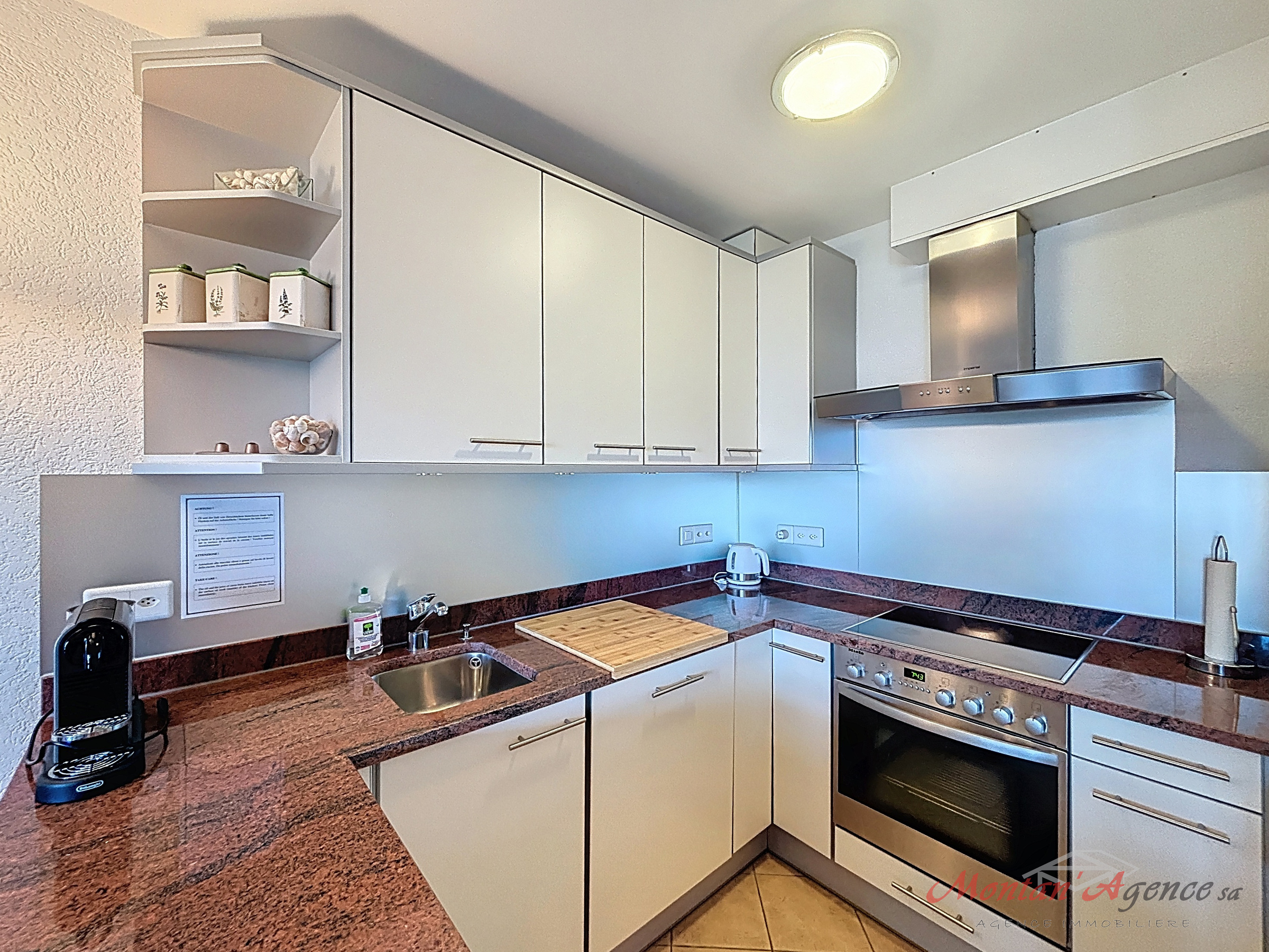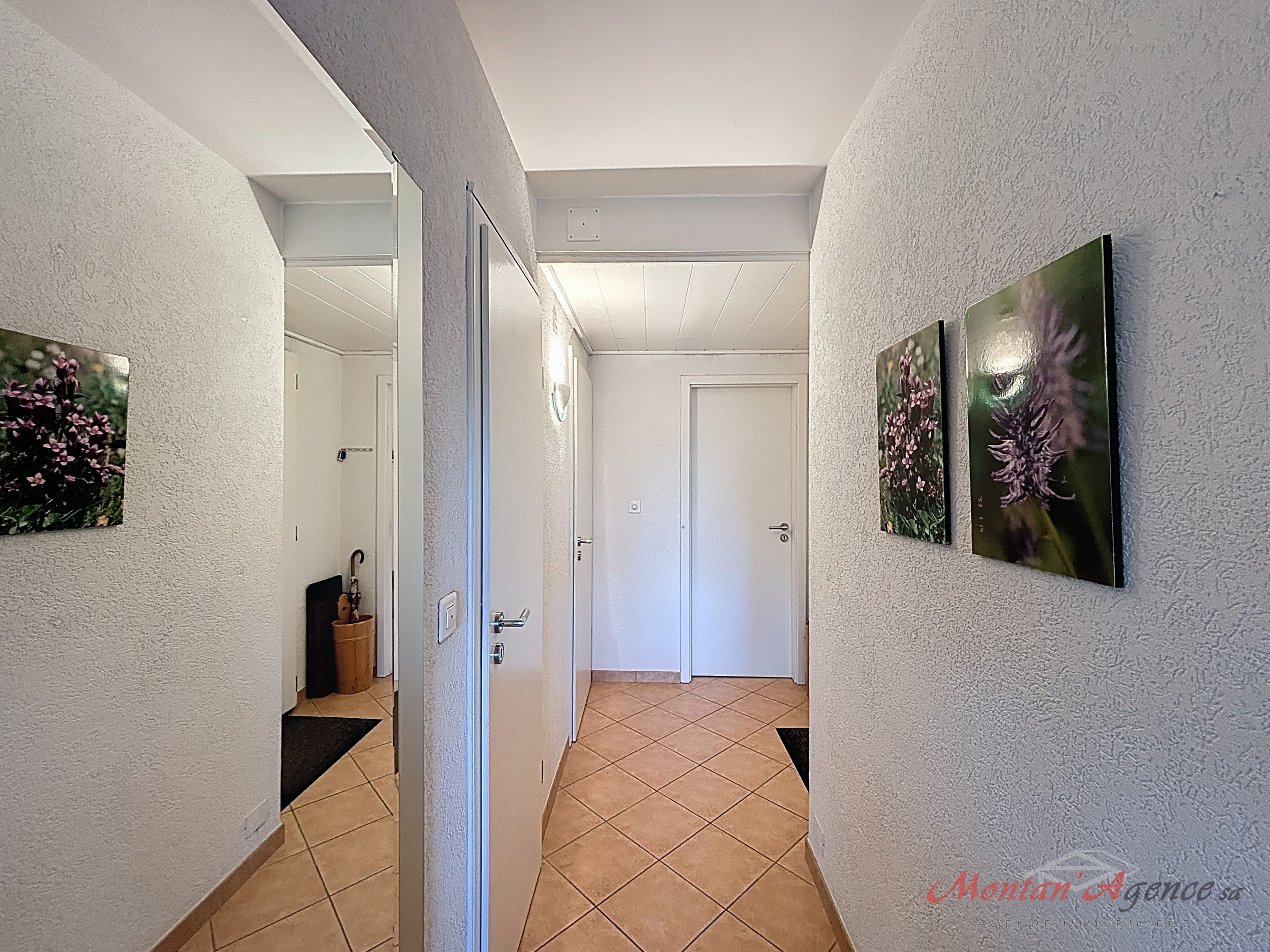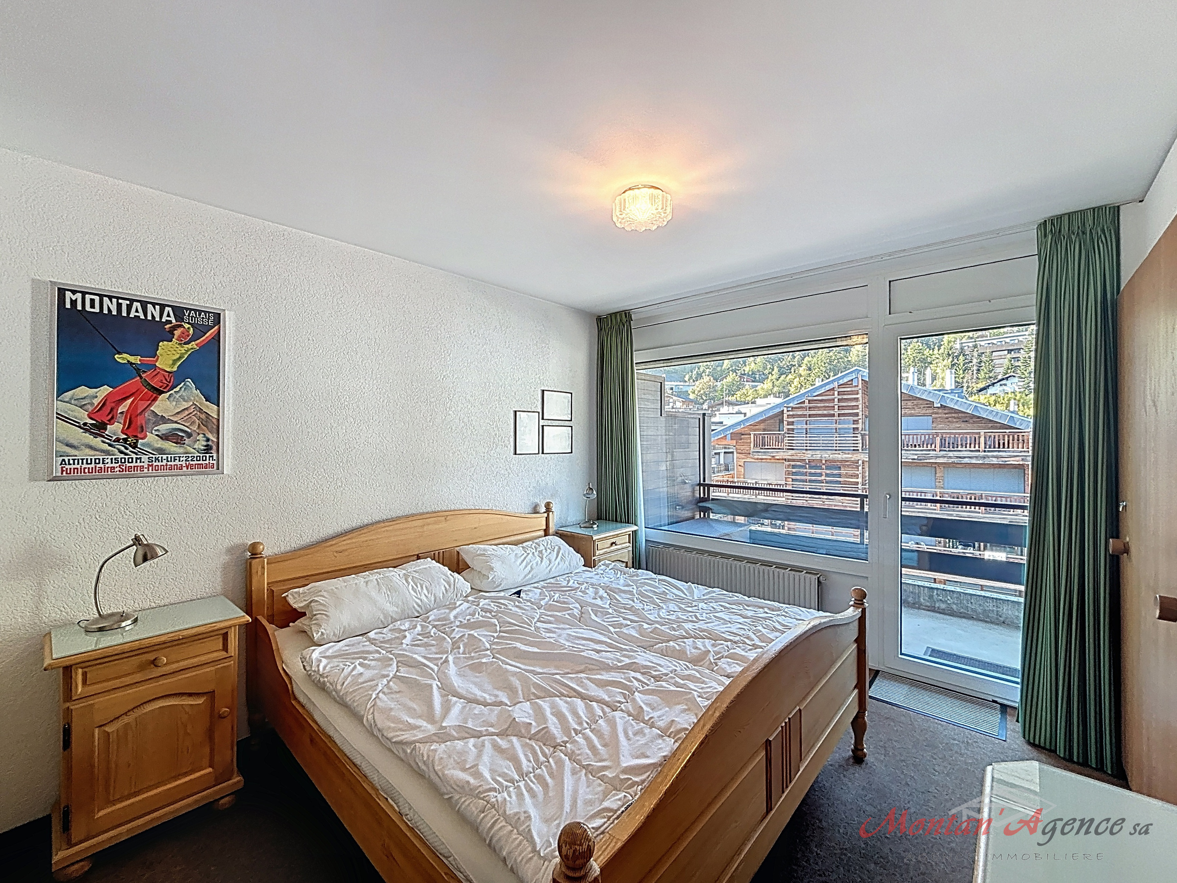 Incantevole appartamento di 3 stanze, ideale per 4 persone, situato al 4° piano di un edificio residenziale nel centro del Montana, vicino alle cabinovie Signal. Offre una magnifica vista sulle Alpi, in un ambiente tranquillo e soleggiato.