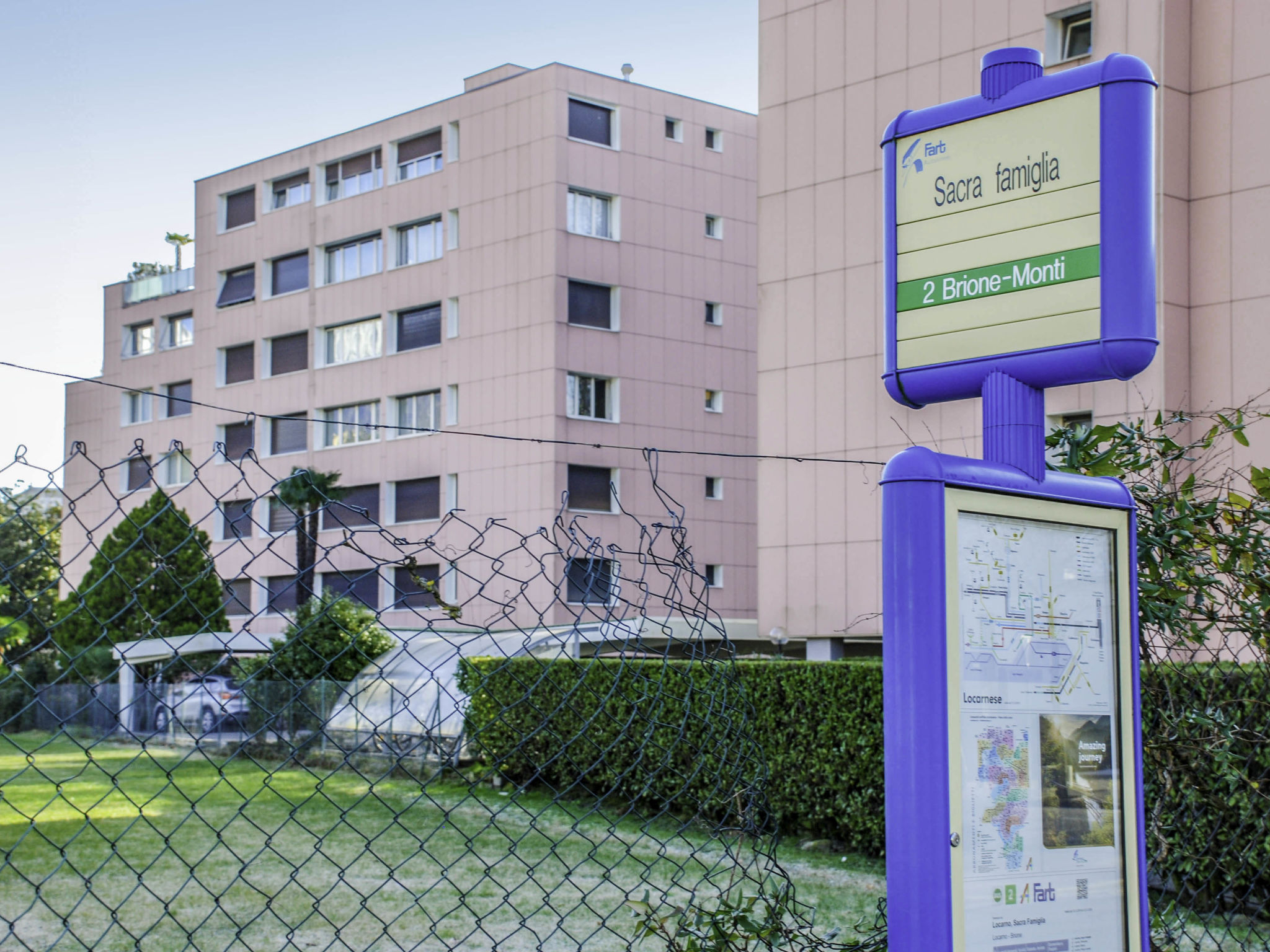 Locarno: Condominio "Condominio Lido", grande su 6 piani, costruito nel 1970, circondato da alberi e prati. In periferia, a 1.5 km dal centro di Piazza Grande, Locarno, posizione tranquilla, soleggiata, a 300 m dal lago, immerso nel verde. Nella casa: ascensore, riscaldamento centralizzato. Accesso fino alla casa. Parcheggio (coperto) presso la casa. Negozio 1 km, negozio alimentare 700 m, supermercato, shopping center 1 km, ristorante 200 m, zona pedonale 1.5 km, fermata bus "Locarno Sacra Famiglia" 50 m, stazione ferroviaria "Locarno" 2 km, spiaggia sabbiosa "Lido" 400 m, piscina 700 m, piscina coperta 400 m. Porto turistico 800 m, campo da golf (9 buche) 450 m, tennis 900 m, mini golf, pista ciclabile 10 m, parco giochi 800 m.