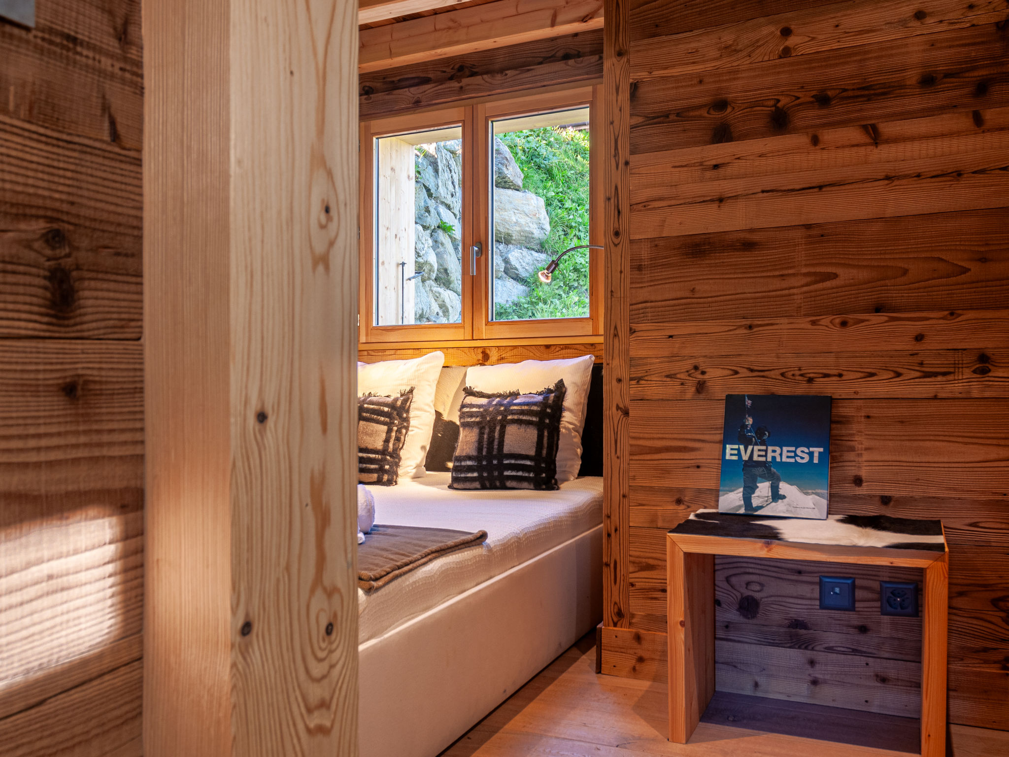 "Skyfall", chalet 4 locali 120 m2 su 2 piani. Arredamento molto confortevole e gradevole: soggiorno/sala da pranzo con camino e TV (via cavo). Uscita sul balcone. Cucina aperta (forno, lavastoviglie, 4 piastre ad induzione, tostapane, bollitore elettrico, congelatore, macchina da caffè elettrica, capsule per la macchina da caffè (Nespresso) extra, set per raclette, microonde combinato, set per fondue (formaggio)). WC separato. Piano inferiore: 2 camere, ogni camera con 1 letto alla francese (180 cm, lunghezza 200 cm). 1 camera con 1 letto alla francese (160 cm, lunghezza 200 cm). Vasca/doccia, WC separato. Riscaldamento a pavimento. Grande balcone, esposizione est, grande terrazza, esposizione sud. Mobili da terrazza. Bella vista sulle montagne e sul paesaggio. A disposizione: lavatrice, asciugatrice, seggiolone, lettino per bimbi fino 2 anni. Internet (wifi). Parcheggio (1 Auto) vicino alla casa, in inverno a 100 m. Prego notare: appartamento per non fumatori.
