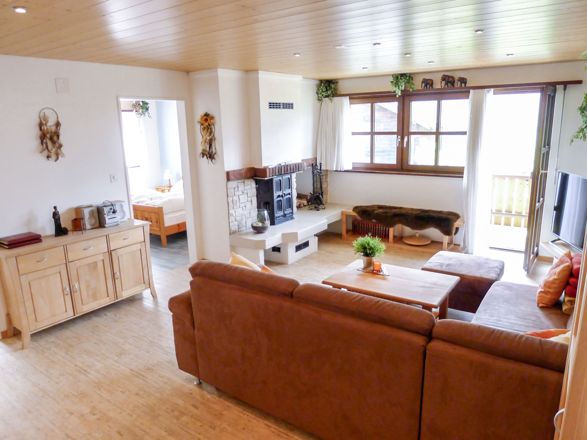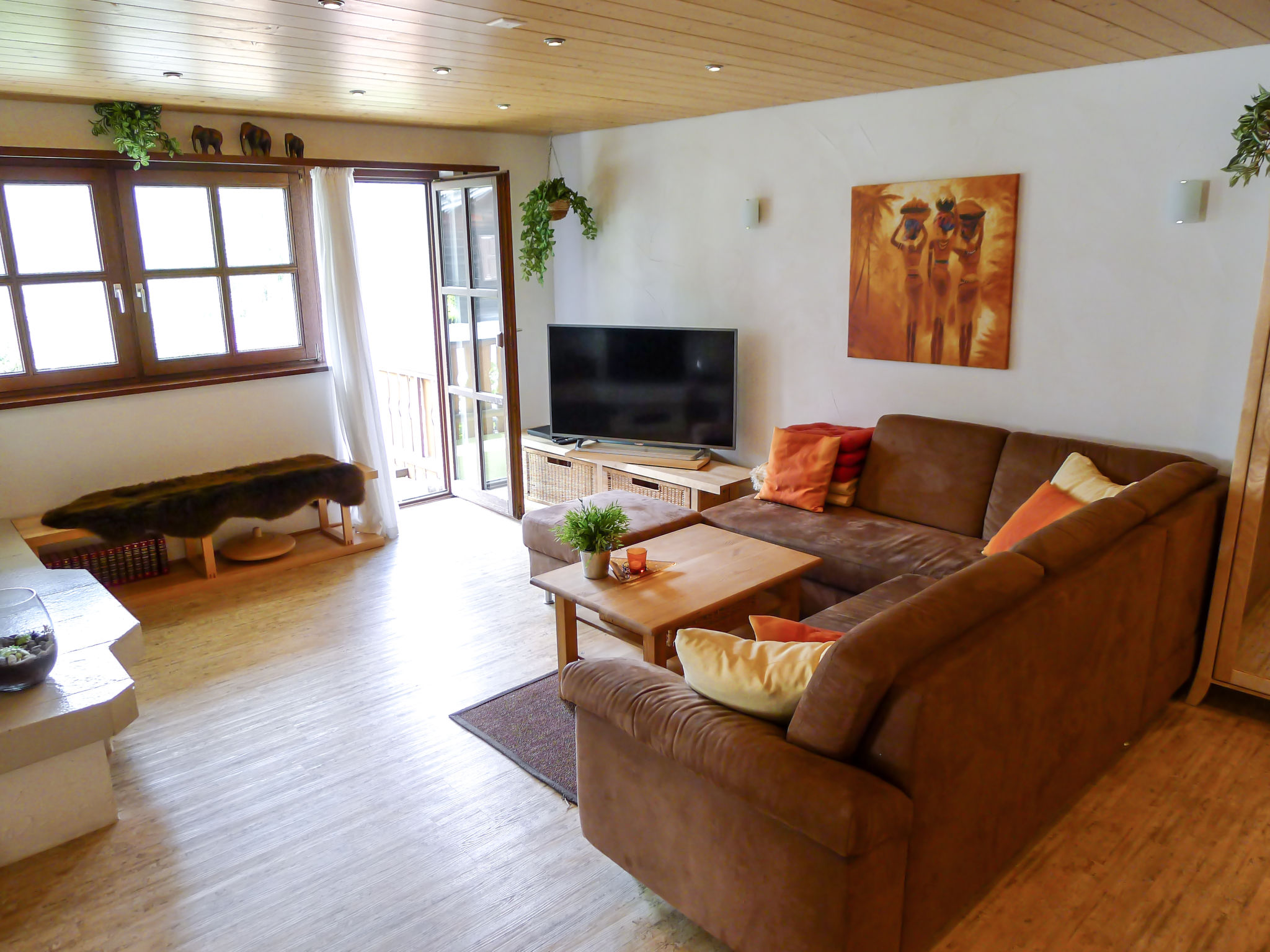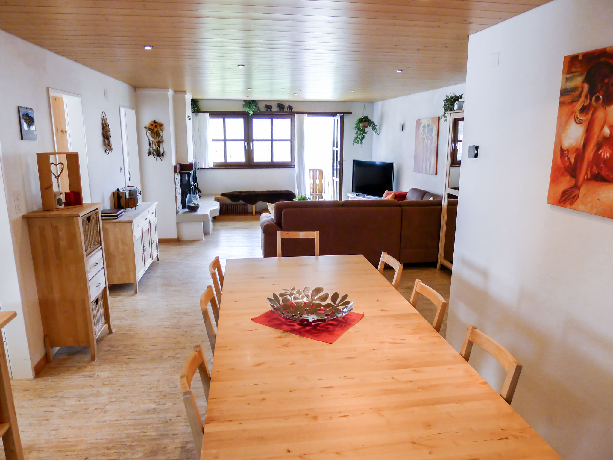 "Fricktalerhuus Apt 3", apt. di 4 locali 85 m2 al 1. piano. Arredamento confortevole e accogliente: soggiorno/sala da pranzo con camino e TV (satellite) (schermo piatto), impianto stereo. Uscita sul balcone. 1 camera matrimoniale. 2 camere piccole, ogni camera con 2 letti. Cucina aperta (3 punti cottura, forno, macchina da caffè elettrica, set per raclette) con tavolo da pranzo. Doccia/WC. Balcone. Bella vista sulle montagne, sul paesaggio e sulla località. A disposizione: lettino per bimbi. Internet (wifi, gratis). Parcheggio vicino alla casa. Prego notare: appartamento per non fumatori. Massimo 1 animale/cane consentito.