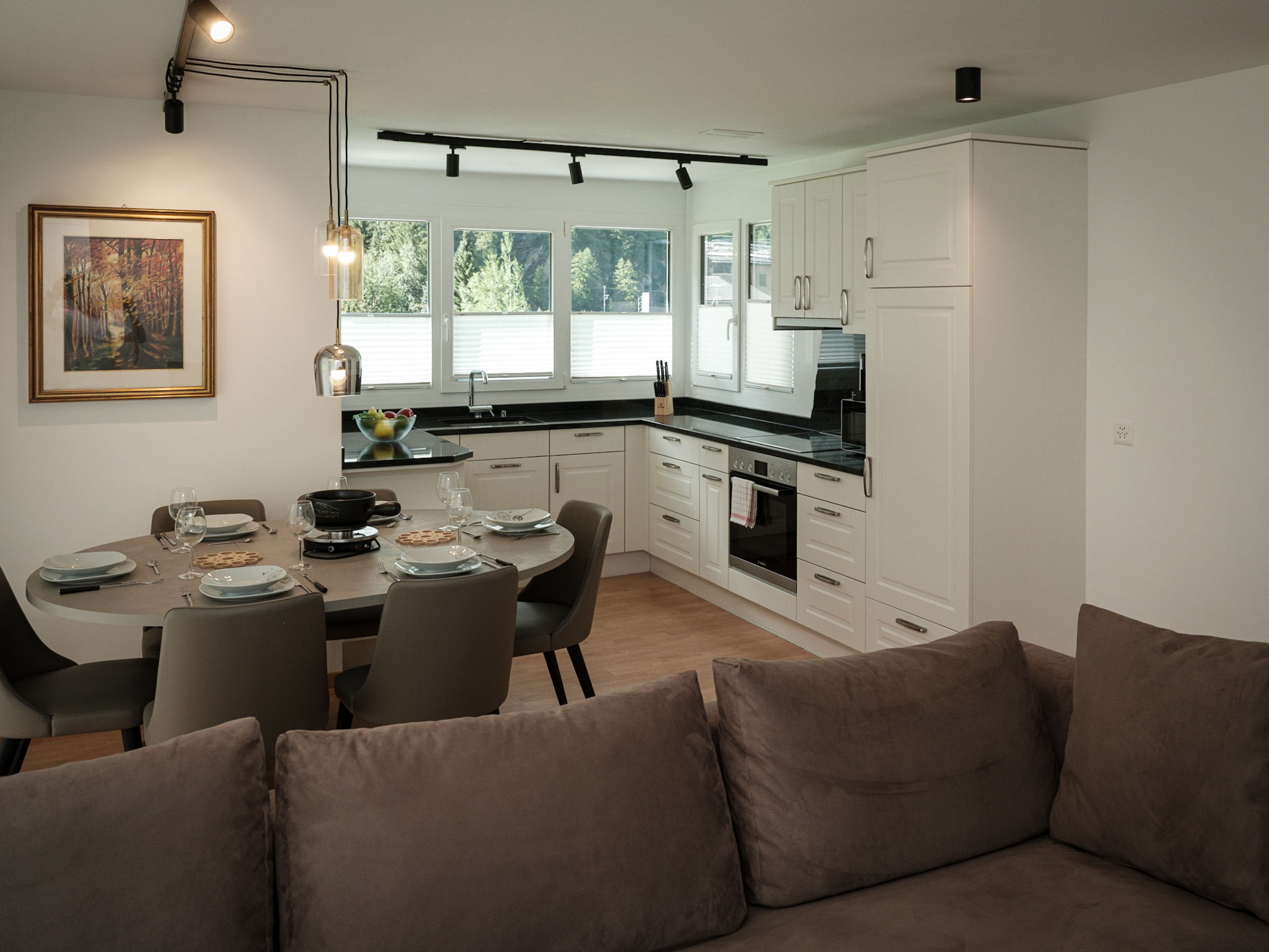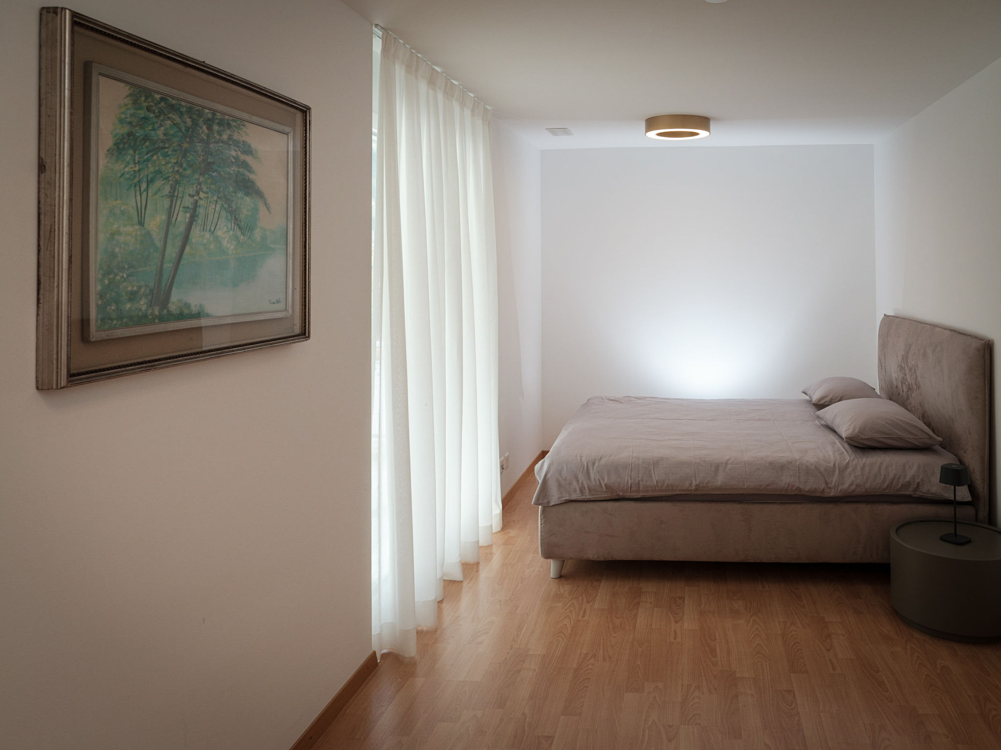 "Da Vinci", apt. di 4 locali 93 m2, esposizione sud. Spazioso, arredamento gradevole e elegante: soggiorno con TV. Uscita sul balcone, esposizione sud. 1 camera con 1 letto doppio (1 x 160 cm, lunghezza 200 cm). Uscita sul balcone, esposizione ovest. 1 camera con 2 letti (90 cm, lunghezza 200 cm). 1 camera con 2 letti (90 cm, lunghezza 200 cm). Cucina aperta (forno, lavastoviglie, 4 piastre cottura in vetroceramica, forno a microonde, congelatore, macchina da caffè elettrica). Vasca/WC, doccia/WC. Riscaldamento. Esposizione sud, esposizione ovest. Mobili da balcone. Laterale vista sulle montagne. A disposizione: Internet (wifi, gratis). Garage. Adatto alle famiglie. Se la proprietà viene prenotata per un numero inferiore di ospiti rispetto alla capienza massima, alcune camere non saranno disponibili.