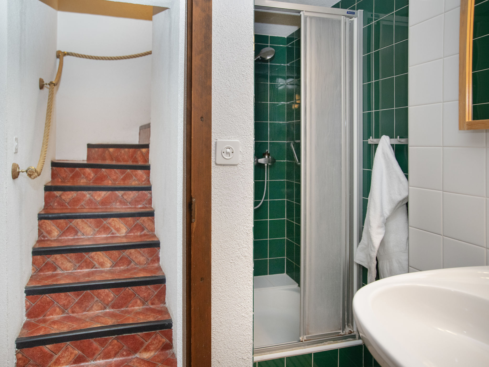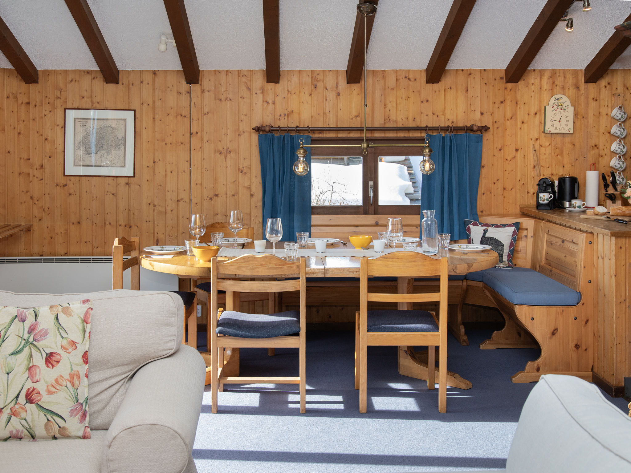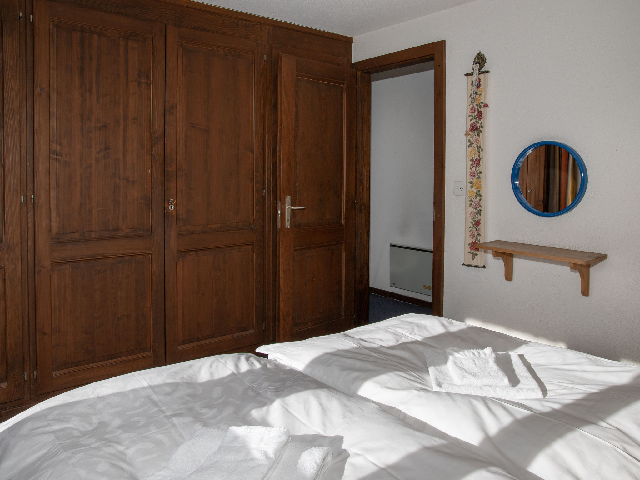 "5 Ecorces", chalet 5 locali su 3 piani, esposizione sud. Arredamento confortevole e accogliente: soggiorno/sala da pranzo con camino e TV (via cavo). Uscita sul balcone. Cucina aperta (4 punti cottura, forno, lavastoviglie, bollitore elettrico, macchina da caffè elettrica, capsule per la macchina da caffè (Nespresso) extra, set per fondue (formaggio)). 2 doccia/WC, WC separato. Riscaldamento elettrico. Piano inferiore: 2 camere, ogni camera con 2 letti (90 cm, lunghezza 200 cm), lavabo. Uscita sulla terrazza. 1 camera con 1 letto (90 cm, lunghezza 200 cm). 1 camera con 2 letti (90 cm, lunghezza 200 cm). Moquette. Balcone, esposizione sud, terrazza. Mobili da balcone. Splendida vista sulle montagne, sul paesaggio e sulla località. A disposizione: lavatrice. Internet (wifi, gratis). Parcheggio (1 Auto) a 50 m. Prego notare: appartamento per non fumatori.